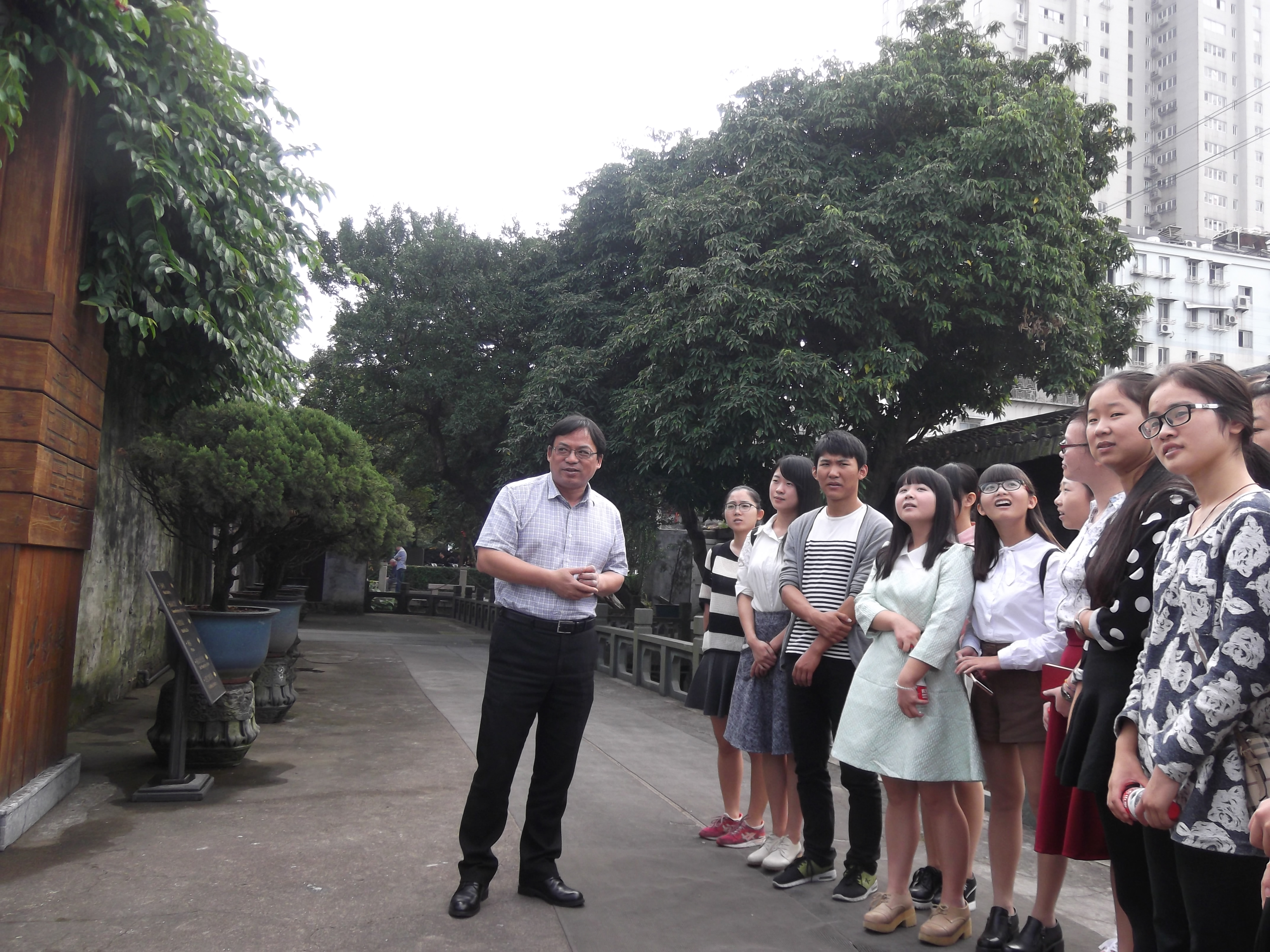 经过玉海楼颐园时,其门联云:“退思补过,时还读书。”李刃主席笑道,今日与你们文化交流切磋,我占了上风,同学们回去该退思补过了。三分谈笑,实则是颇具苦心的教诲。同学们与李刃主席交流文化,深感自己的文化积淀薄弱,功力不足,此次游历之后,应当退思补过。