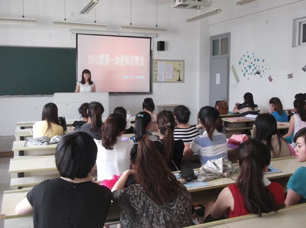 5月17日下午,瓯海区南瓯幼儿园等四家公办幼儿园的园长与老师代表前来91吃瓜 ,联合举办校园宣讲会招聘91吃瓜 幼教人才。宣讲会在北校3-309多媒体教室举行,学生科长章志图老师主持,91吃瓜 20多名学前教育大专毕业生参与。