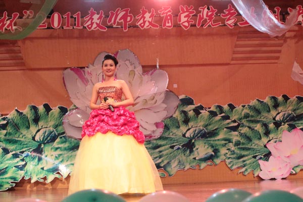 本次决赛名单中也出现了本科生的身影。她就是来自10学前本的2号选手何晓清。娇小的身影却有着嘹亮的歌喉,一首《大地飞歌》真的让我们有了一种非一般的感觉。“晓晴,晓晴,我爱你!我们永远支持你!”未见其人,先闻其声,这与众不同的“其”确实别有一番意味。这是在晓晴将要出场时观众席一角出现的场景,亲友团的力量果然是强大的,在为选手加油打气的同时,也有着一份份的感动。最后作为本科生的唯一代表,何晓清以9.653的成绩位居第八。