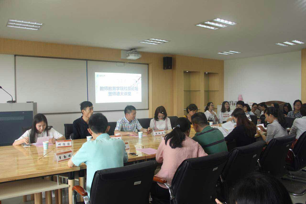 附属第一实验小学老师、毕业于2016年小学教育专业的叶蕯蕯校友,浙江师范大学研究生、毕业于2016年应用心理学专业的陶云瑛校友。学院出席的领导老师有院党总支书记兼副院长杨立淮、院党总支副书记杨丽君、教技系书记李丽、学前系书记陈旭微、小教系副主任章勤琼、学生科严晓秋,以及学院各班学生代表近60人。