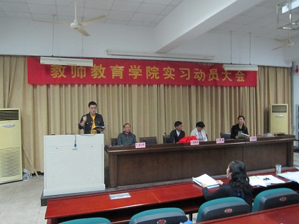 1031日下午1:00,在学院教务科的组织下,09教技、09心理、09学前实习动员大会在北校3号楼101大教室胜利召开了。出席本次会议的有学院分管副院长彭小明教授、各系主任和书记、各系带队指导教师,以及09教技、09心理、09学前专业126名同学。本次动员大会由教务科胡孙贵老师主持。