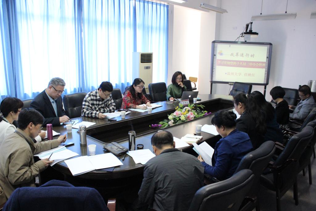 于4月2日下午在北3-311会议室召开了二级理论中心组学习(扩大)会议。盛邀校人事处处长、马克思主义学院院长任映红教授为学院做题为《改革进行时---十八届三中全会精神讲解》辅导报告。参加人员有学院领导班子、各系负责人、各科室负责人。