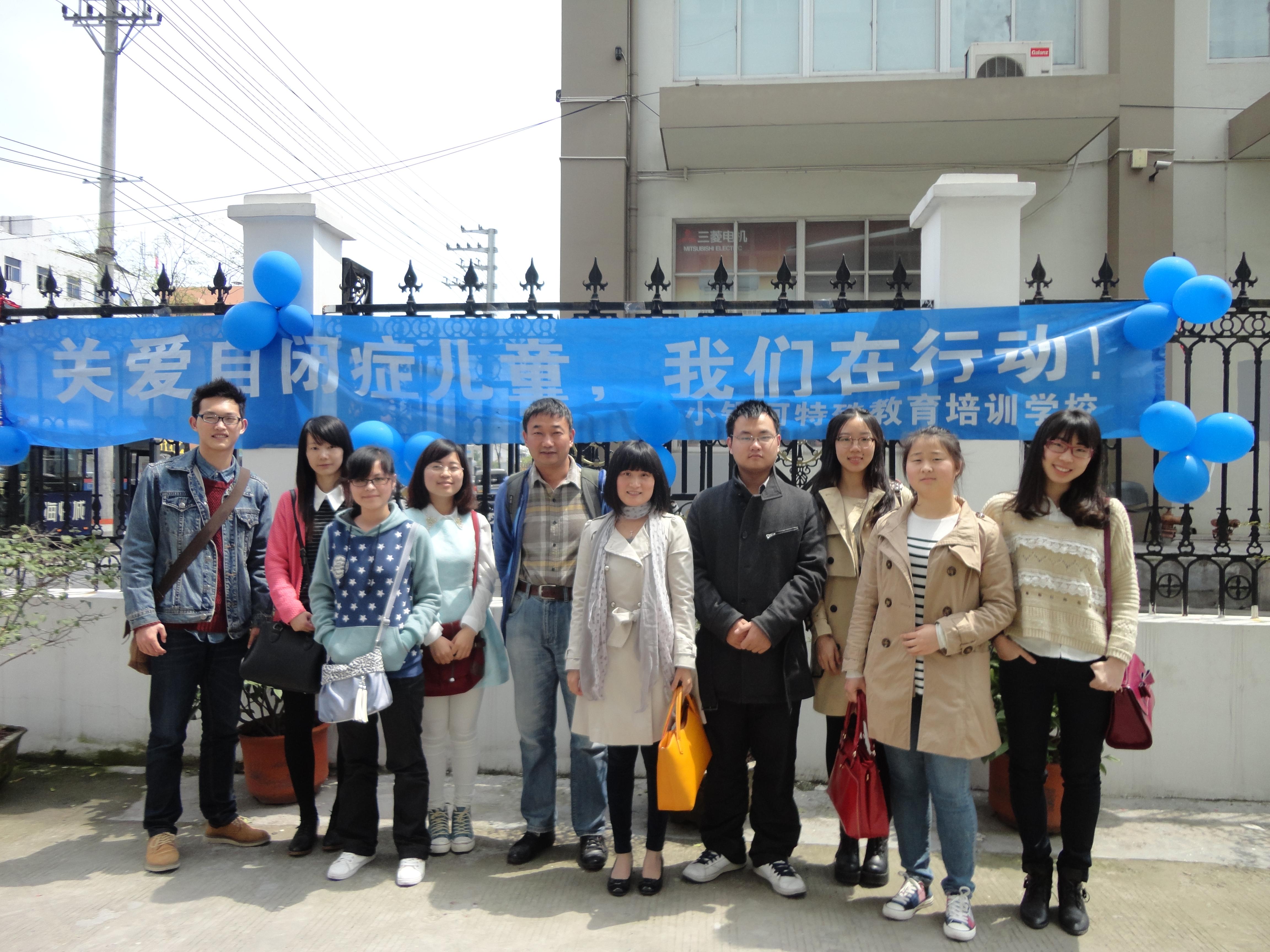 心理测量工作坊的成员,在郭文斌老师的带领下来到温州市小银河特殊教育学校,开展关爱自闭症儿童的活动。