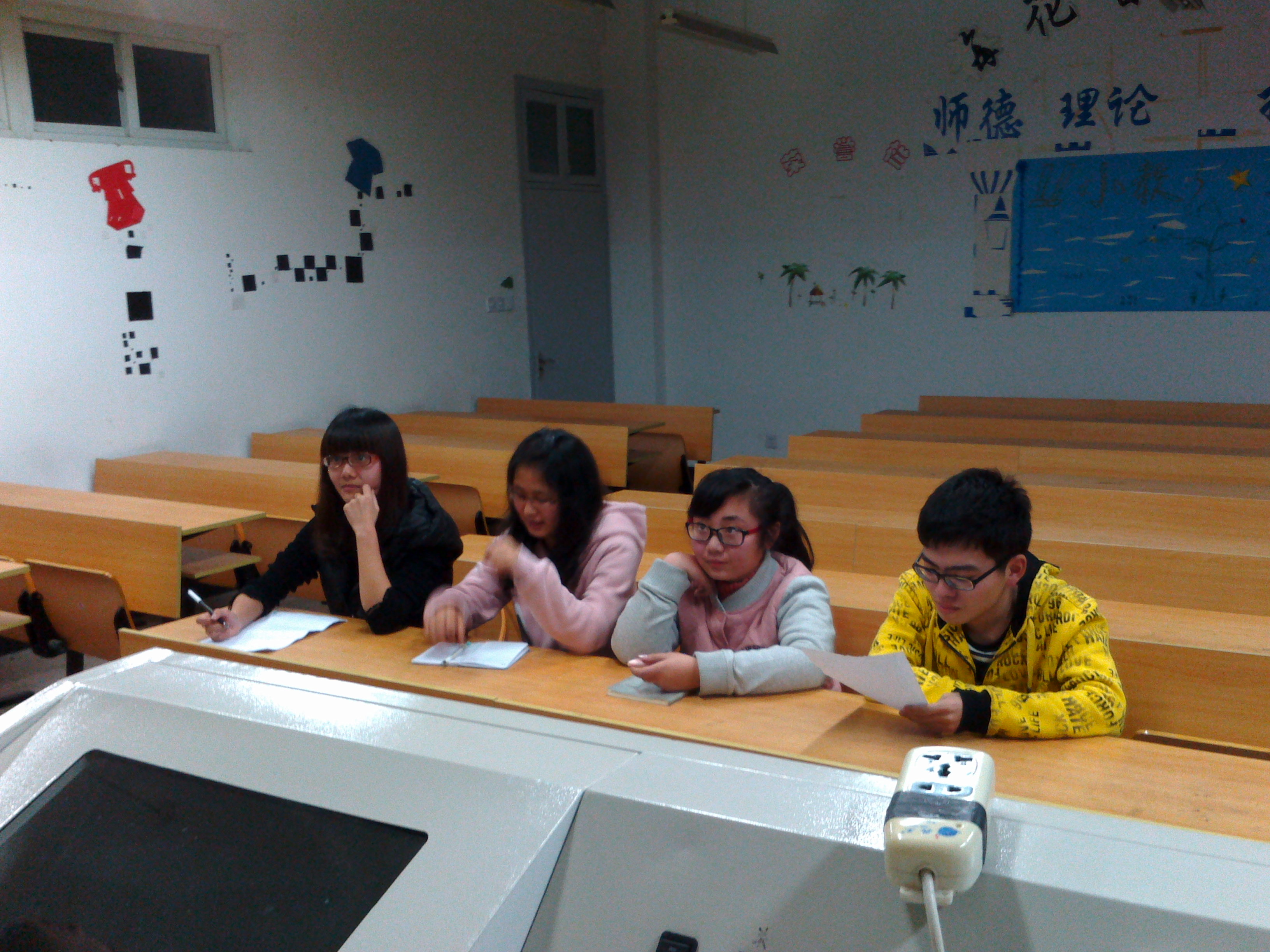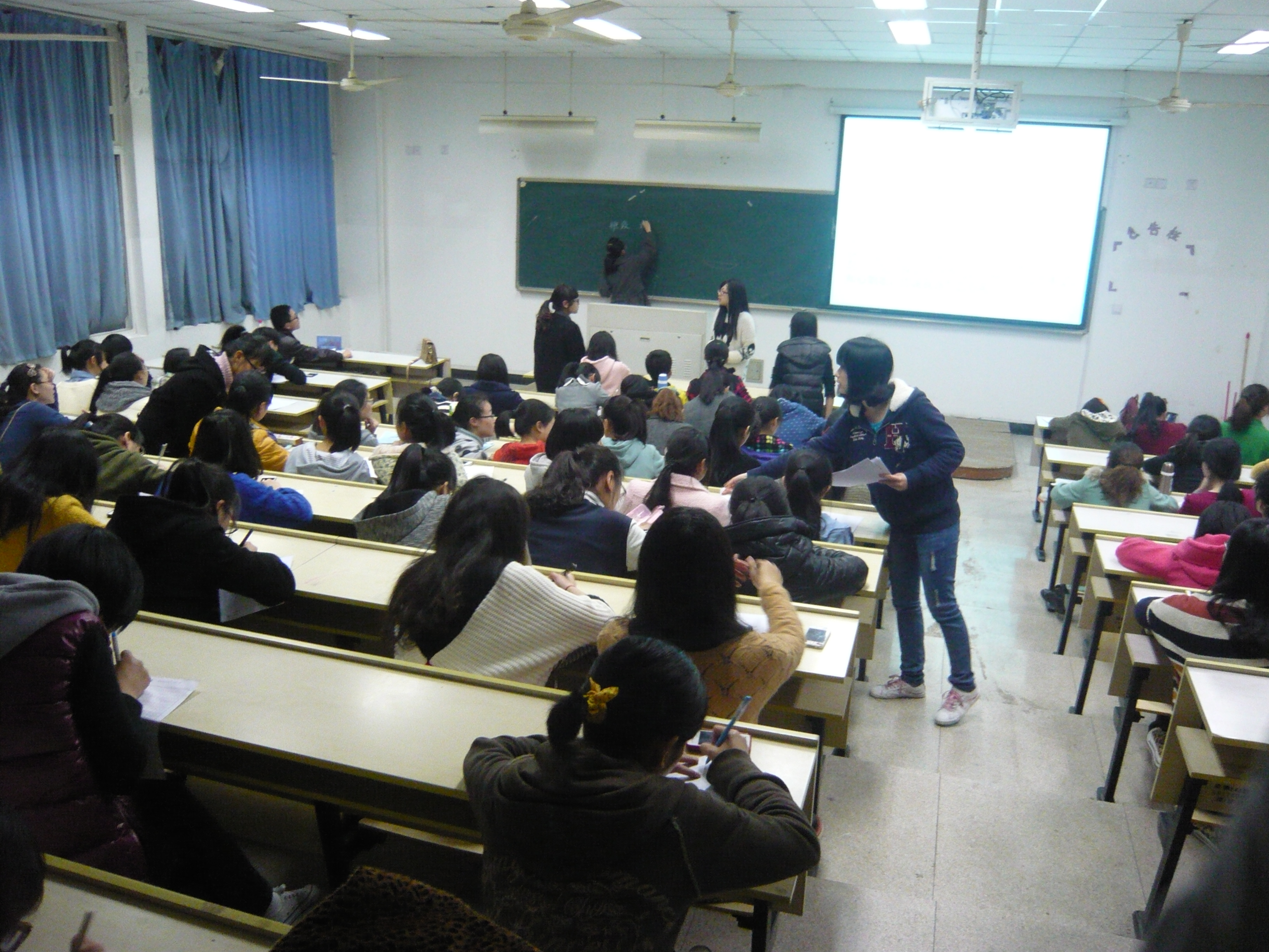 志愿者工作精品项目,在校内外都享有很高的评价。知心姐姐队伍由留守儿童分队、农民工子弟分队和海岛分队组成。本次招新大会,就是要补充新鲜的血液到各个队伍当中去,使志愿者品牌工作历久弥新。此次招新分为三个环节,首先由各个知心小分队的队长就本队开展服务内容、活动情况做简要的介绍。首先,各个队的队长用精美的ppt向大家展示了一个充满爱和温暖的团队,详细地介绍了每个队的主要工作和活动安排,特别是留守儿童分队,给大家留下了深刻的印象,让前面应征的每一位同学都非常感动。接下来就是第二环节——笔试,要求应征者写一封给小朋友的回信,不限内容,大家拿到纸都开始认真地写了起来。写完的同学则去405和406两个教室进行招新的第三个环节——面试。各个队伍的领队通过提问的方式对每位前来参加面试的同学有了初步的了解,并在最后进行集体交流做出决定。