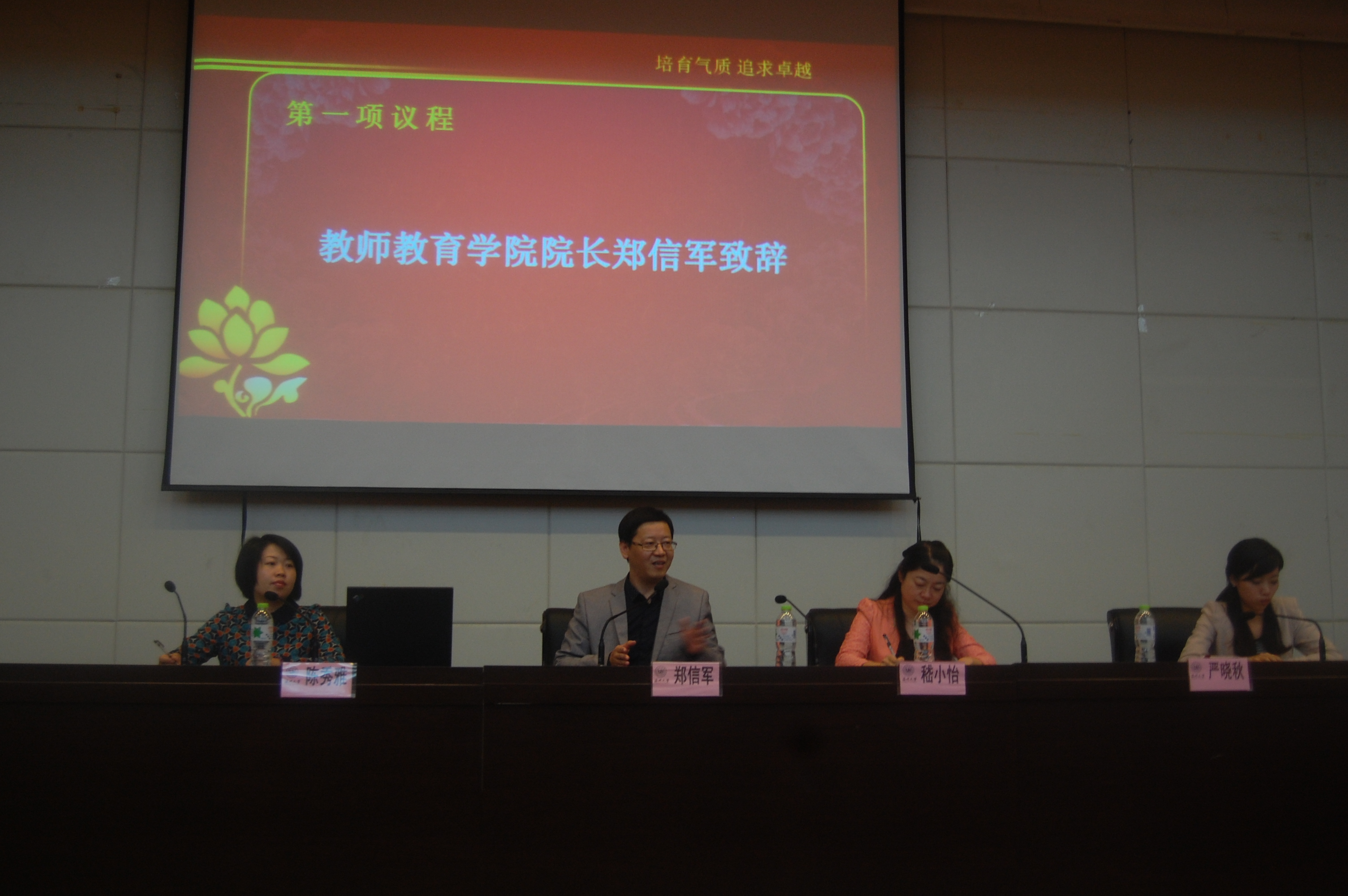 开幕式第一项议程是院长致词。郑院长首先对“师范气质”这个词提出了自己的见解:师范气质就是师范生或者是从事教师职业有别于其他专业而表现出明显而又独特的专业素养和外在表现。郑院长做出了形象的比喻,比如两军交战,水平相当是靠的是气势;两个人交流时,把握主导权靠的是气场;而能给他人留下持久魅力靠的是气质。郑院长指出“师范气质”作为一种软实力,一旦拥有将会终生受益。最后,郑院长对在场的所有学生骨干提出了期望:希望教师91吃瓜