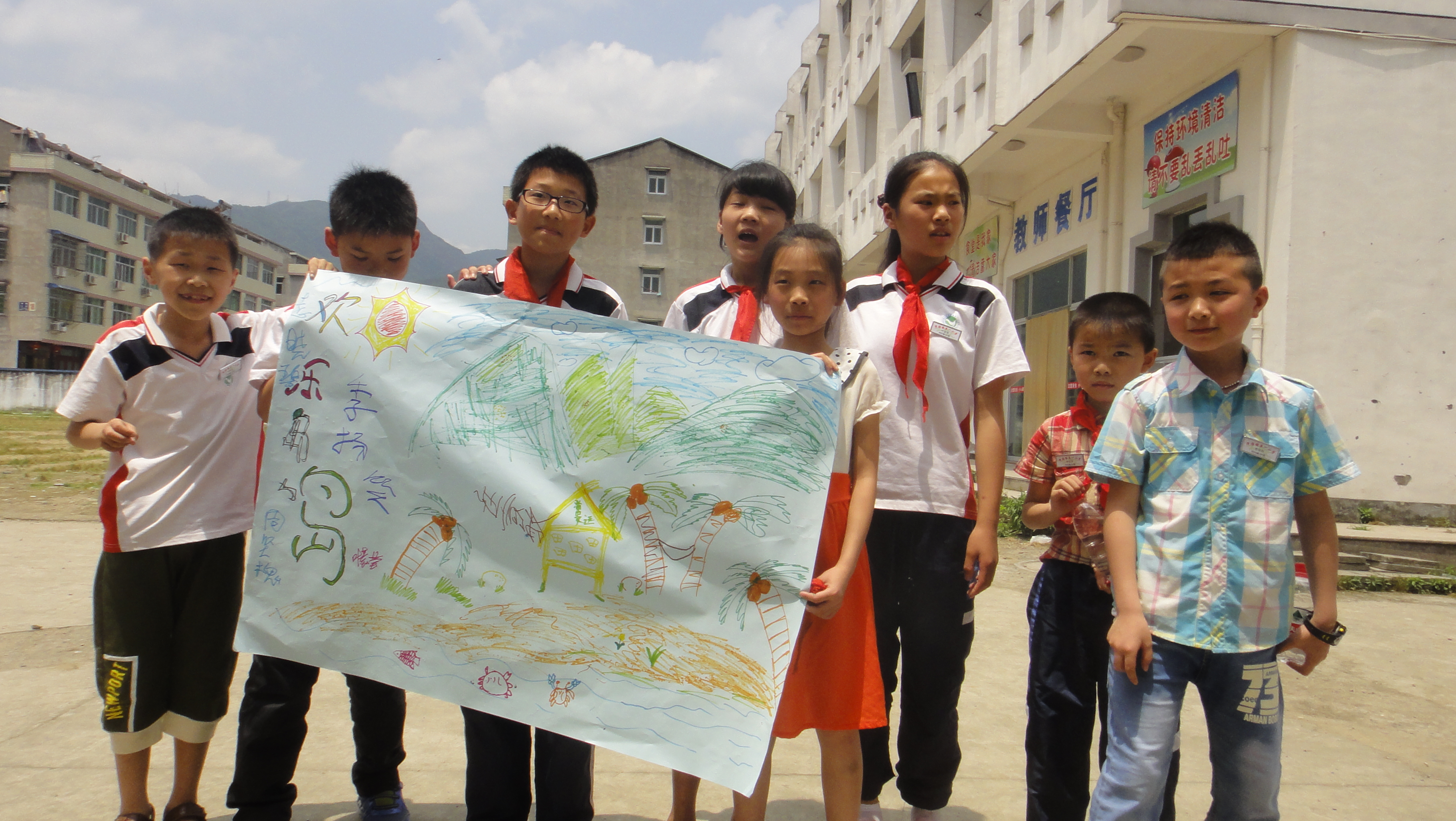 捐赠仪式结束之后,知心姐姐陪这些可爱的孩子们提前过上了儿童节。通过小游戏、手语操等环节,孩子们尽情发挥聪明才智和高超创意,与知心姐姐来了个“零距离接触”。知心姐姐主持人先和孩子们玩了口令小游戏,调动起孩子们的积极性。而后准备了一个需要合作完成工作量较大的游戏,让孩子们分组构建自己的小岛,并在最后分别展示。这个环节中孩子们齐动脑经,通力合作,你一言我一语,将空白的画纸填充成一个个色彩缤纷的美丽家园,争着抢着要介绍自己的家园。最后主持人精心为孩子们准备了一首手语歌的教导——相亲相爱一家人。孩子们对这种未接触的新事物学习的非常认真,尽管有些东西对这个年纪的孩子来说有些困难,但是经过知心姐姐的耐心帮助,最后孩子们都可以正确地完成这首歌,在相亲相爱一家人的歌声中,活动进入了尾声。