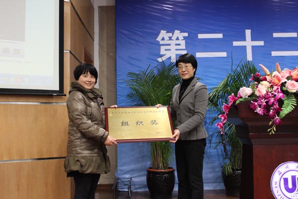林娟娟教授为获奖学院及论文作者颁奖并发表重要讲话。她代表学校对本次年会顺利举办表示祝贺,她充分肯定了年会论文的质量,认为与会论文展现了我校教育科研的实力和水平,体现了我校教师教育的优势和特色。她强调要结合校“十二五”发展规划,利用学校教育科学研究学术年会平台,进一步认识教育研究的重要性,为打造研究型大学而努力。