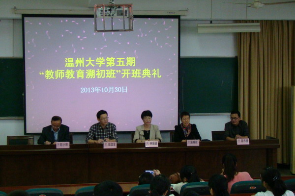 党委副书记林娟娟老师致辞。她首先向与会的领导和专家表示了衷心的感谢并对学员表达由衷的祝贺。随后,她就“溯初班”命名的由来,办学目标,办学制度,办学思想,办学宗旨,课程理念以及课堂形式等方面作了具体的阐述。她谈到,“溯初班”在追慕先辈的同时旨在提高师范生的教师技能。我们要将教学落到实处,在省师范技能比赛以及岗前的编制考试中使学生以优异的成绩通过层层关卡,结出丰硕的果实,提高社会影响力。最后,她对所有在场的学员提出了两点希望:一、少一点功利心,多一点责任心。这要求同学们不要将荣誉和奖项作为最后的目标和追求,对自身和对教师职业要有更高的要求。二、少一点浮躁心,多一点实干劲。进入“溯初班”意味着同学们比其他的同学有了更繁重的学习任务。但同时大家也应该看到,我们比其他的有了更多的学习机会,能够获得更多的学习资源,同学们要驱逐内心的杂念,努力学习,深入实践。