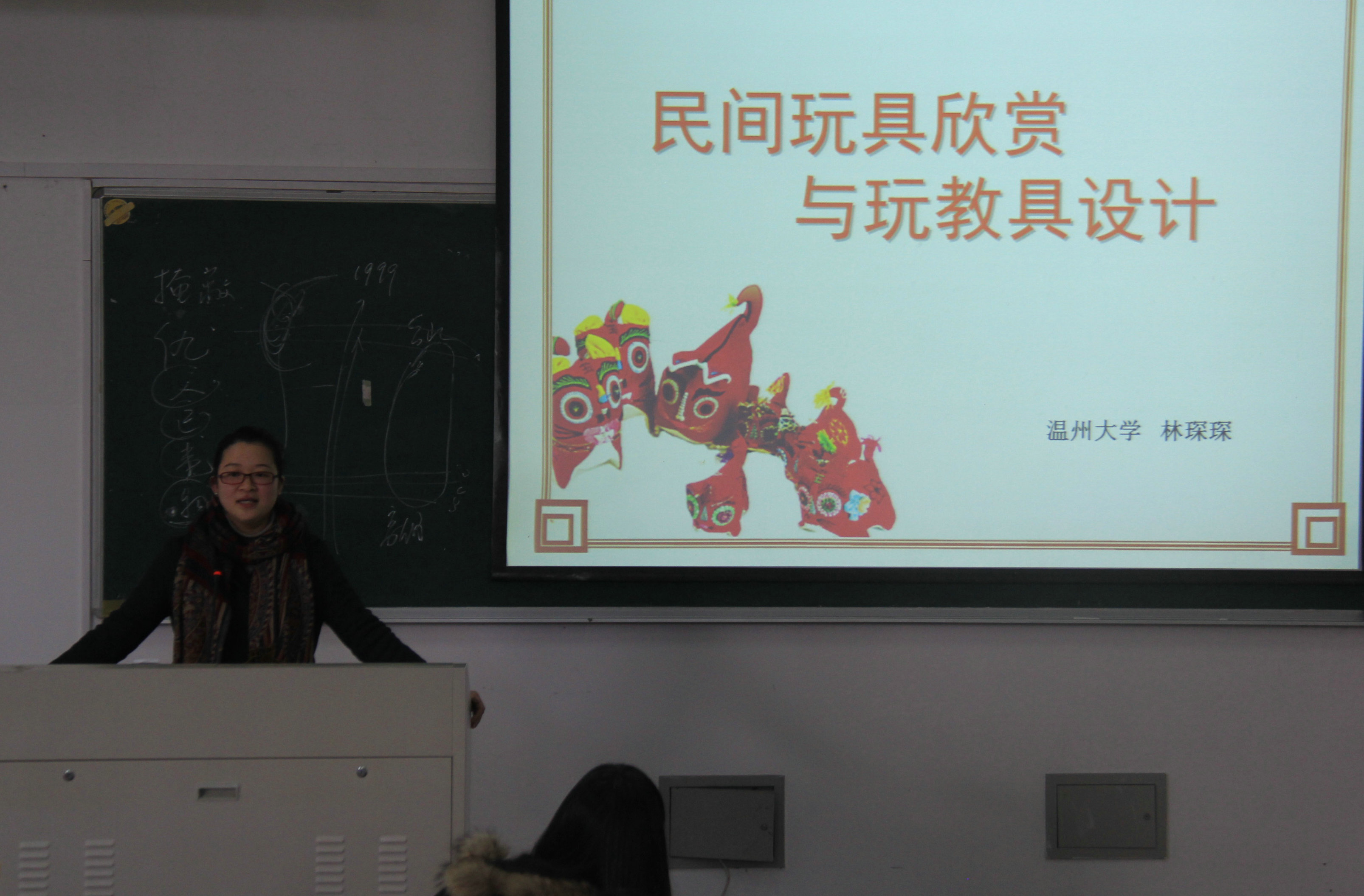 颁奖仪式之后,学前教育系林琛琛老师为与会者开设了《民间玩具欣赏与玩教具设计》的专题讲座,不仅向与会者介绍、分析中国民间玩具的种类与魅力,还重点围绕刚刚在温州举办的第三届全国幼儿园优秀自制玩教具展评活动的作品,讲解了自制玩教具的设计理念、方法技术及评价标准等。针对“新创意·心设计”玩教具设计比赛的内容和要求,林老师也做了具体的讲解,并鼓励大家结合现实需要和所学知识,开动脑筋,动手设计,以培养自己的创新能力。