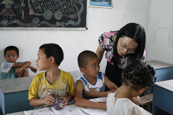 下午2:30,嵇小怡老师和周奇老师准时出现在培英学校的校门口,她们首先步入教室,观察小学生的课前状态,并对小朋友们上课前的一些不良行为习惯进行纠正,从实际出发,教导我们对上课遇到的一些特殊情况的解决方法。嵇小怡老师说:“民工子弟学校的学生生源和市区的小学相比,是有一定的差距的,我们要从各个方面去关注这些学生,不光是学习,更要在生活方面关心学生。上课的内容也要合理,发现学生的闪光点,并将这些闪光点放大,着重培养。”老师用自己丰富的教学经验来指导我们,让我们受益匪浅。最后,老师还和同学们一起合了影。