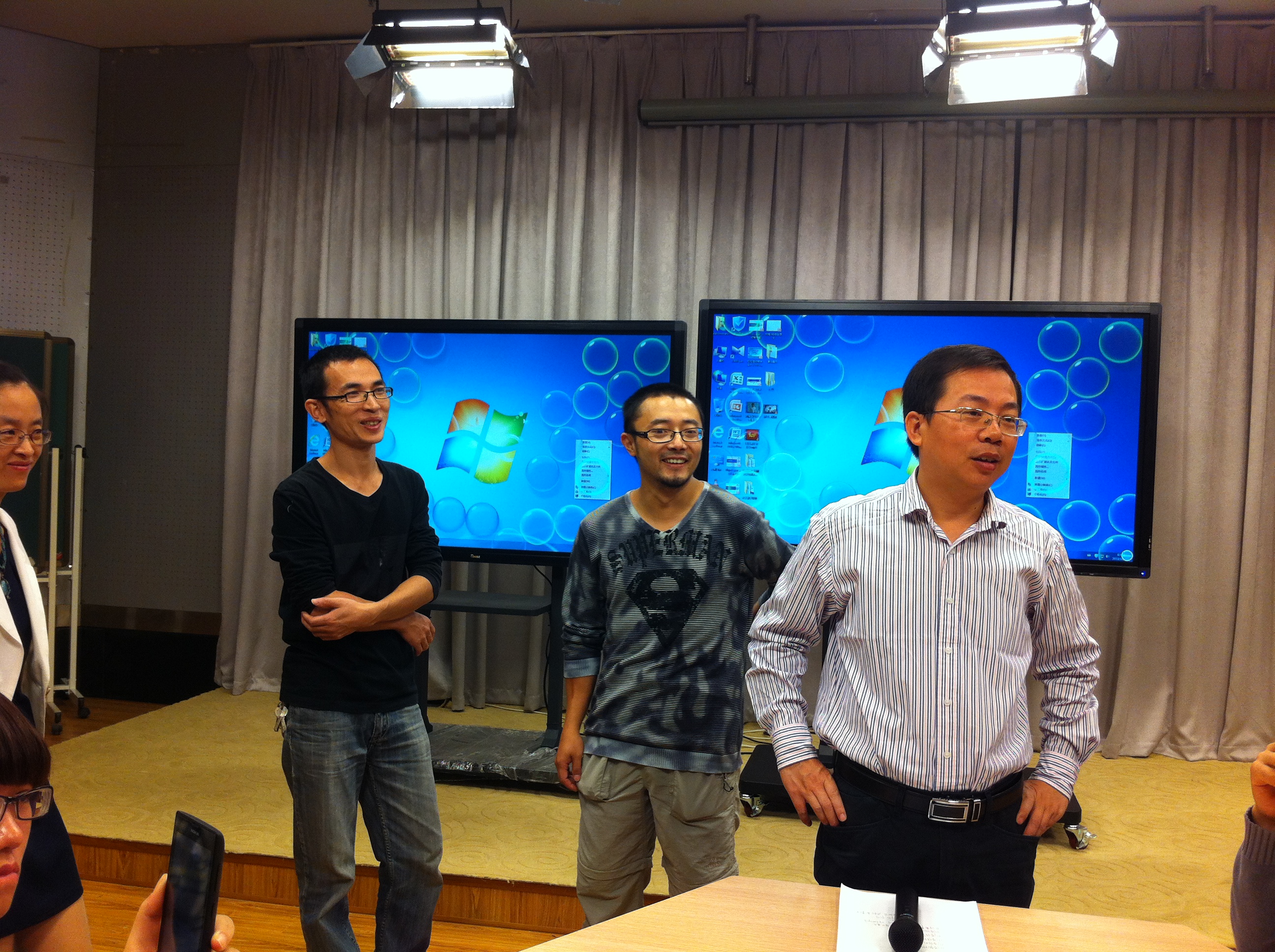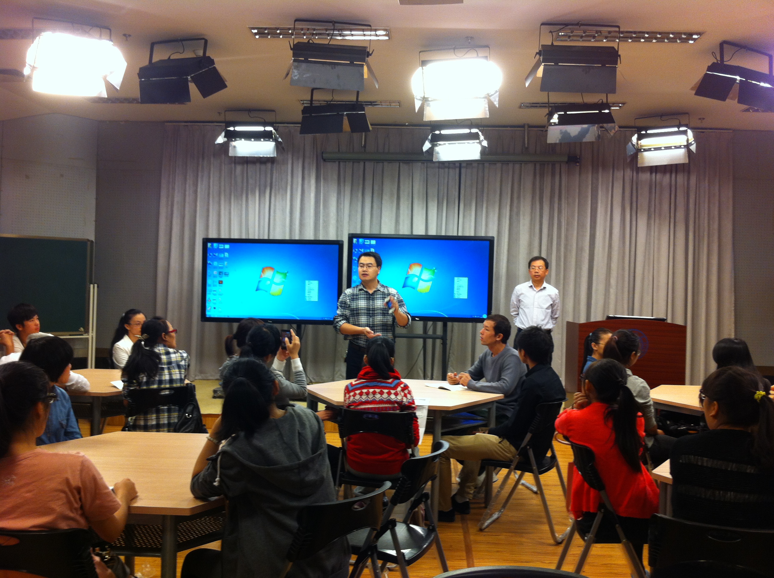 课程负责人王佑镁教授以《小学教师专业标准(试行)》、《教师教育课程标准(试行)》和《小学信息技术新课程标准》为依据,以“以学为本”的教育理念为指导,以提高高校师范类专业学生教学设计素养为服务宗旨,重点介绍了课程的特点与意义、教学团队、教学内容设计、课程教学方法和手段、课程实践环节和激励和评价机制等方面,对课程的具体实施过程做了相应的部署。同时,也希望同学在学习过程中能够树立良好的学习风气,恪守课堂纪律,改善学习行为,提高学习效率。团队成员李伟老师介绍了课程资源准备、校外师资及实践教学安排情况;黎启龙老师就录制过程中的细节进行了提示。