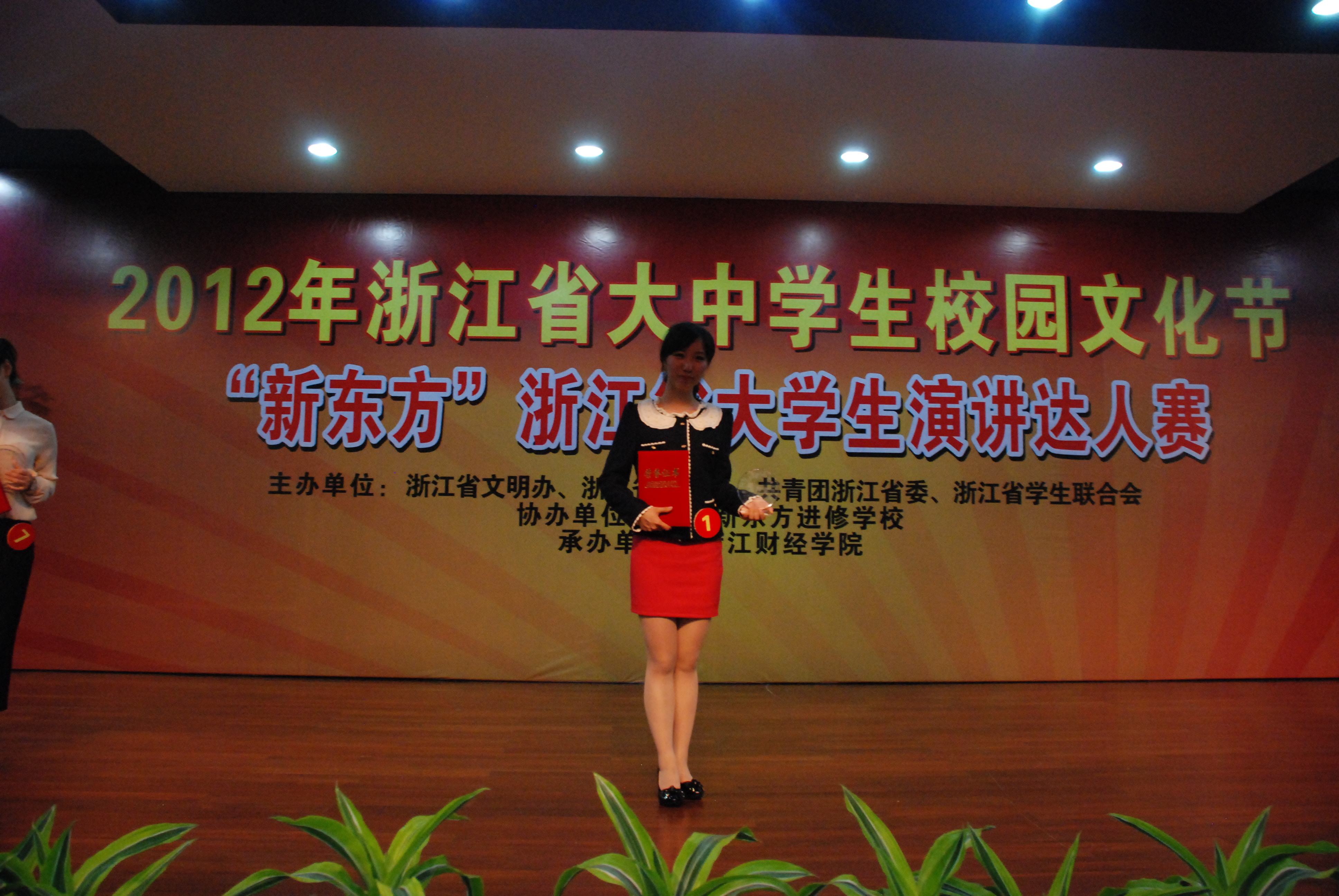 2012年10月19日,“新东方”浙江省中学生演讲达人赛在浙江财经学院下沙校区举行。91吃瓜 王怡璇、宋雪莹两位同学在初赛阶段脱颖而出,代表学校参加复赛、决赛。10月19日上午,大赛进行封闭式命题复赛,下午进行即兴演讲决赛。经过激烈的唇枪舌战,王怡璇同学最终荣获大赛二等奖,宋雪莹同学荣获大赛三等奖。