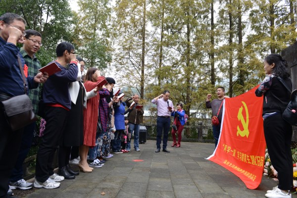 永嘉五尺乡是中国工农红军第十三军的诞生地,也是红十三军军部所在地。20日上午,学院党总支在这里举行了一次以“坚定理想信念,做合格党员——深入学习贯彻党的十八届六中全会精神”为主题的“两学一做”学习教育主题党日活动。在中国工农红军第十三军纪念碑前,全体参加的党员群众合影留念。随后党员同志在党总支书记杨立淮同志的带领下,向纪念碑鞠躬致敬,并重温了入党誓词。接着,教职工们来到旁边的红十三军军部旧址,党总支书记杨立淮同志对大家上了一堂现场党课,他结合十八届六中全会精神,就共产党员如何坚定理想信念,做合格党员这一主题作了深入浅出的讲授,使党员进一步明确了什么是理想信念,如何坚定理想信念,做合格党员,增强了党性;同时他也就教师如何立足岗位,教书育人,立德树人提出了希望与要求,使广大教职工深受教育。本次主题党日活动是学院深入推进“两学一做”学习教育的实践教学活动,也是一次全体党员和教职工理论学习活动。为进一步提升全院党员及教职工思想政治理论水平,学院党总支还汇编了近期党的重要理论文献资料及习近平总书记系列重要讲话学习资料,作为自学和集中学习的必备资料,帮助党员和教职工进一步深入学习贯彻党的十八届六中全会精神,做到学有所思、学有所悟、学有所成。
