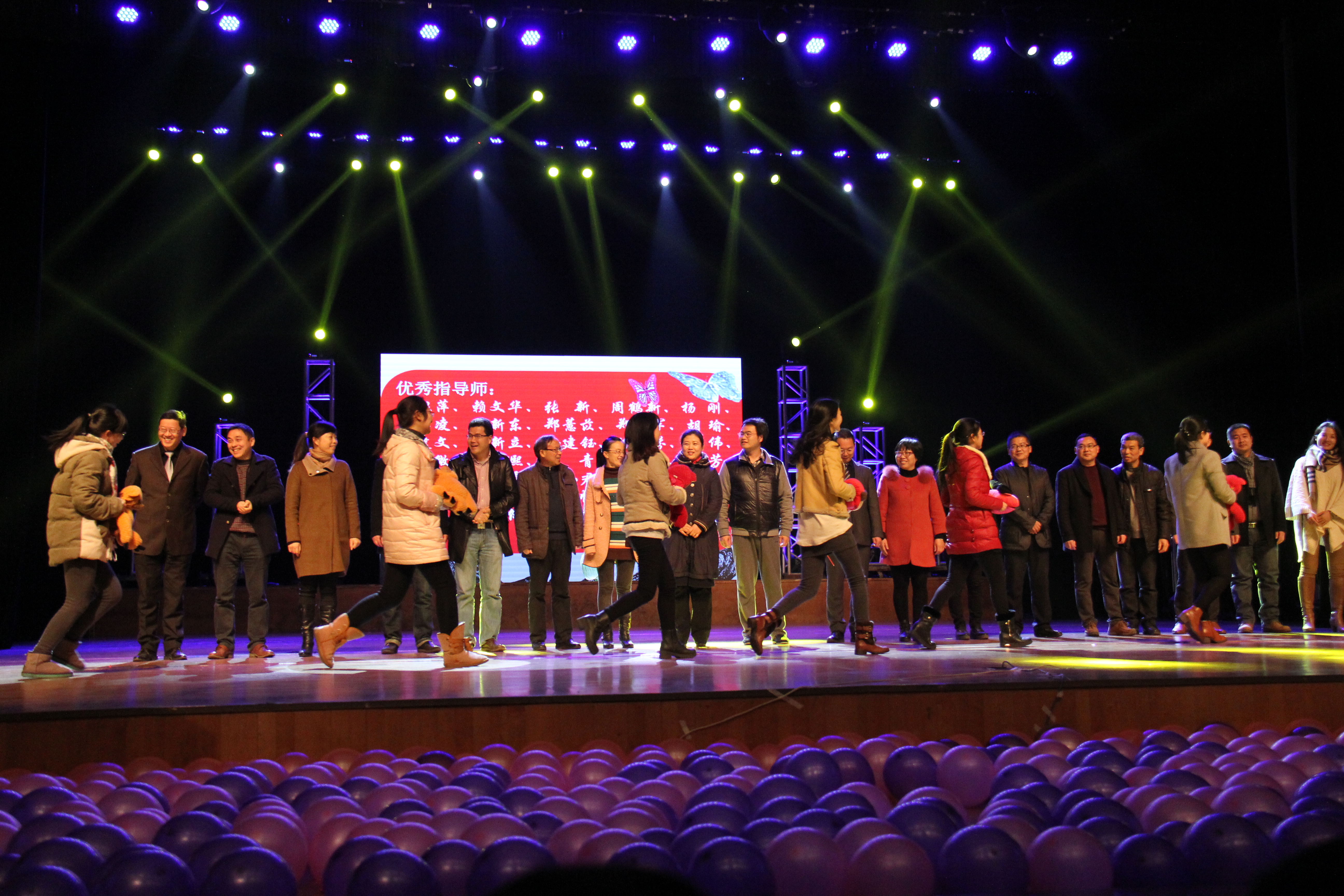 学风表彰大会穿插在精彩的节目之中,相得益彰,更添几分成功的喜悦。首先表彰的是校优秀班主任、校最受爱戴的老师、各项学生竞赛比赛项目的优秀指导老师,学生们为老师送上了学生自己购买的暖手宝,礼物虽小,但在寒冷的冬季,表达了学生对老师们浓浓的感恩之情。随后表彰了校优良学风班、学习标兵、院最佳班级、优秀学子,以及在竞赛、比赛中取得优异成绩的学子们,对他们取得的成绩给予了充分的肯定。