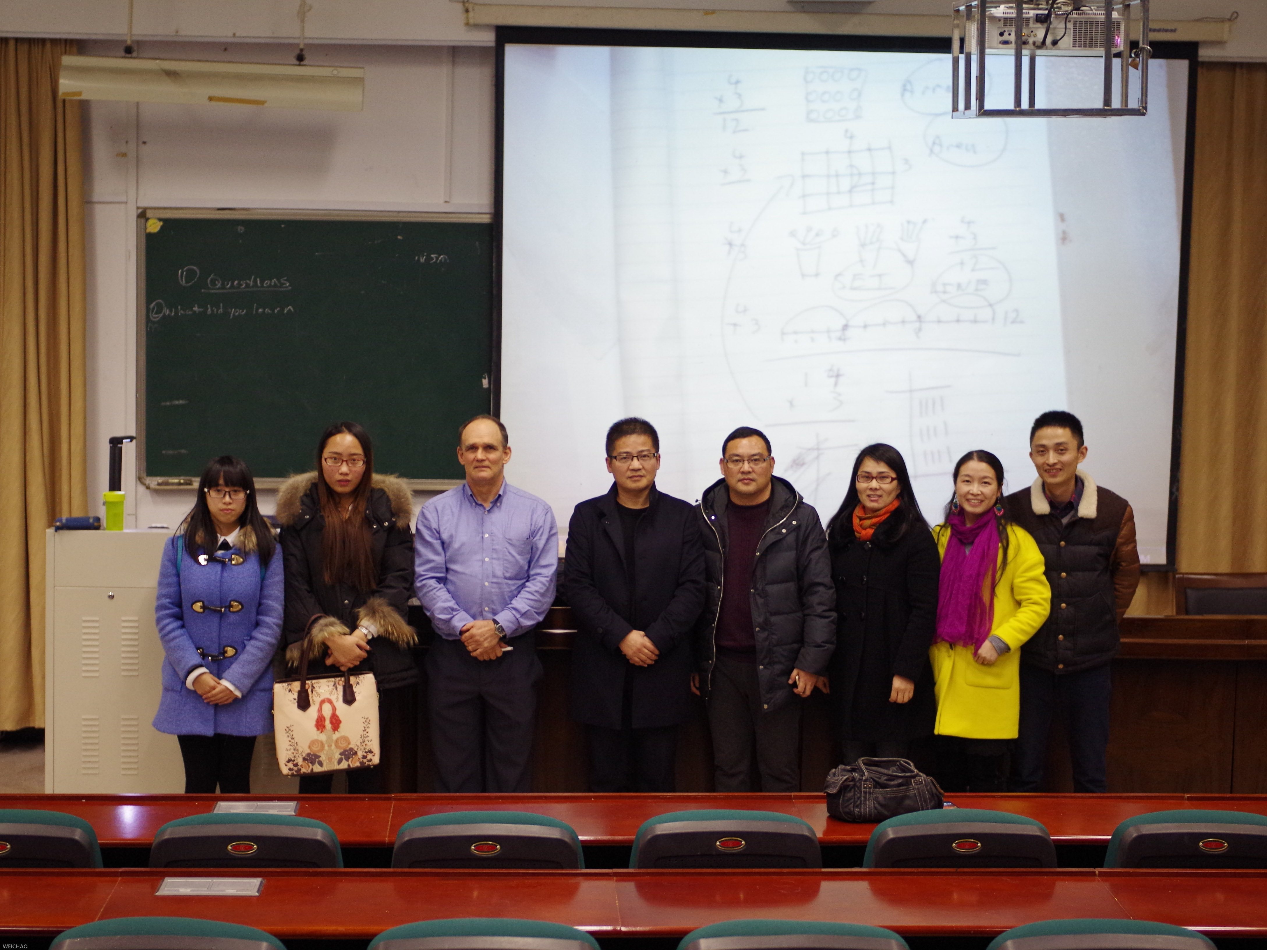 学术报告。此次学术报告主题为《数学教学在西方:理念与挑战(Teaching Mathematics in the West: Assumptions and Challenge)》。主讲人为澳大利亚里菲斯大学教育与教师专业发展学院博士生导师Stephen Norton 博士,由章勤琼博士担任翻译。出席本次活动的还有13级小教全体学生以及小教系主任李梁老师、周鹤新老师、陈海娜老师、谭莉老师。