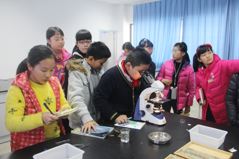 在实验室里,小学生们认真听取各实验室负责老师的讲解,老师和志愿者带领小学生逐一体验了各个实验室的教具,孩子们不时提出疑问,或驻足观看,或侧耳倾听,或踊跃参与,或互动交流。在自然科学室里,他们观察显微镜下的神奇世界;机器人实验室里,他们体验了智能机器人夹取、移动、投篮等运作全过程;在未来课堂实验室,他们体验了先进的教学媒体在教学中的应用。整个活动十分愉快,教室里回荡着阵阵笑声,直到下午4点小学生们才离开。实验室开放活动有效地利用学校资源,让孩子们体验了各种实验教学仪器,激发了他们对科学知识的兴趣。