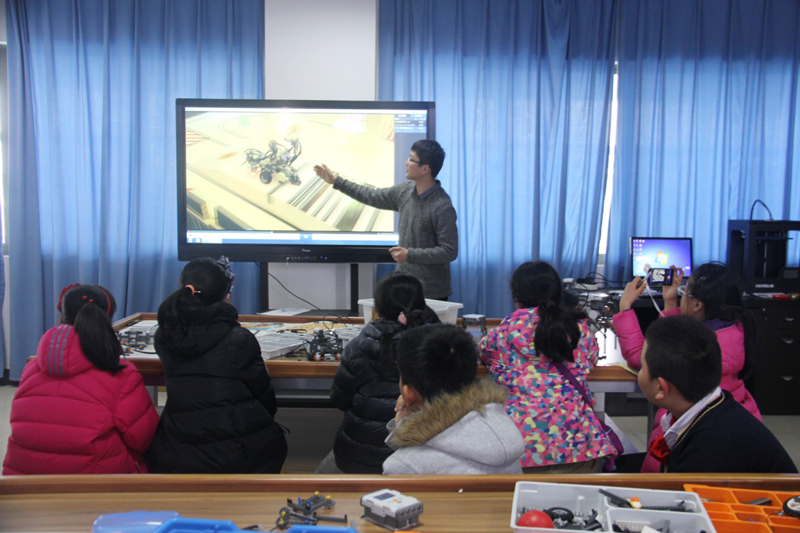 6号楼教师教育实验中心参观体验。在实验中心老师的带领下小学生们分别参观了乐高机器人实验室、 未来课堂实验室和小学科学实验室。