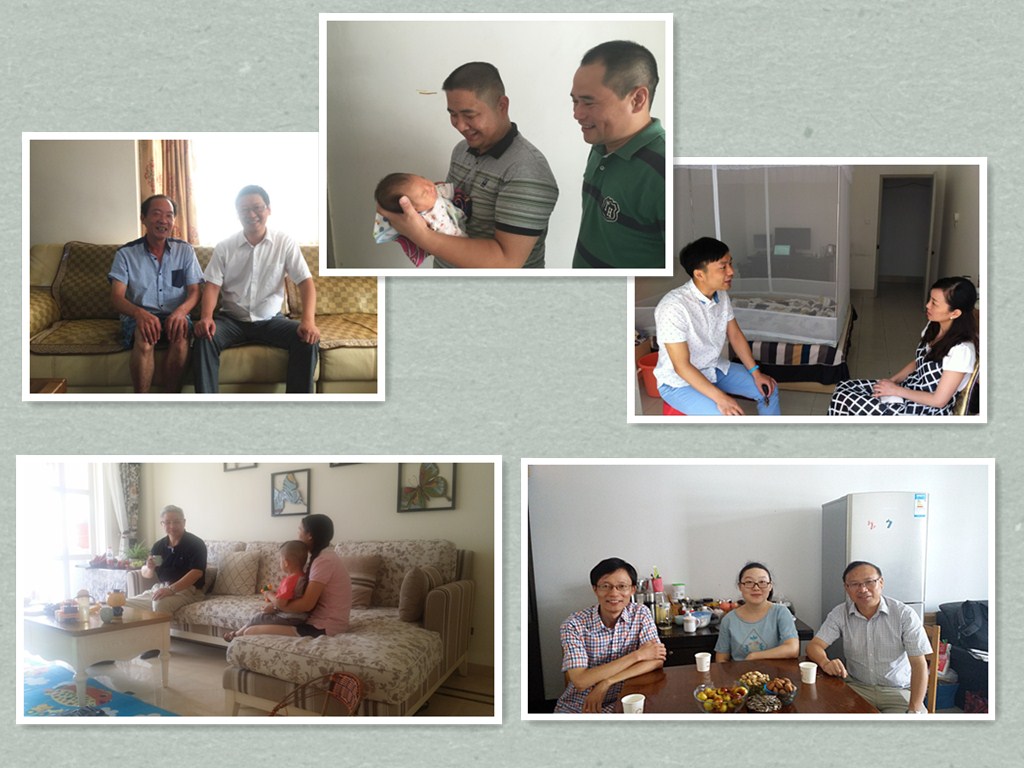 中午,学院领导郑信军、杨立淮、潘玉进、彭小明、胡瑜、杨丽君与学院工会、相关科室人员一起,走入部分教师家里进行慰问。他们与老师们亲切座谈,了解老师工作生活的情况,并送上了节日慰问品。