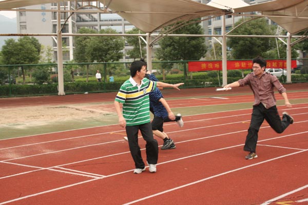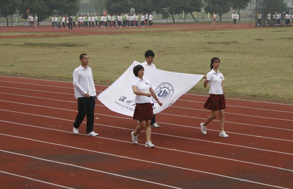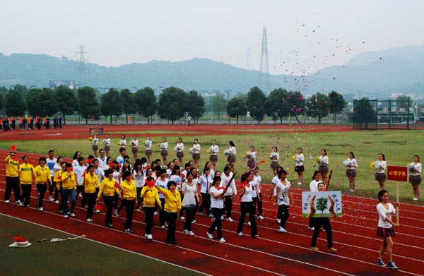 团队精神、协作精神、奉献精神共建和谐学院。教师代表折延东、学生代表毛云瑜、裁判代表陈丽勇依次在开幕式上发言。学院党总支书记蔡联群主持开幕式并宣布运动会开幕。