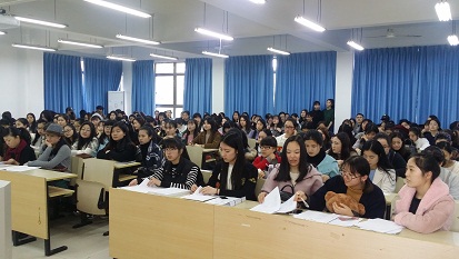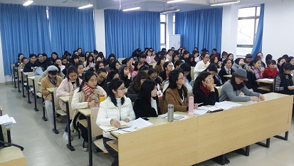 在南校9号楼C101教室胜利召开14学前专科实习动员大会。出席会议的有学院主管实践教学副院长潘玉进教授、学前系主任曾国老师、教务科胡孙贵老师、各实习带队老师以及192名14学前专科实习生。