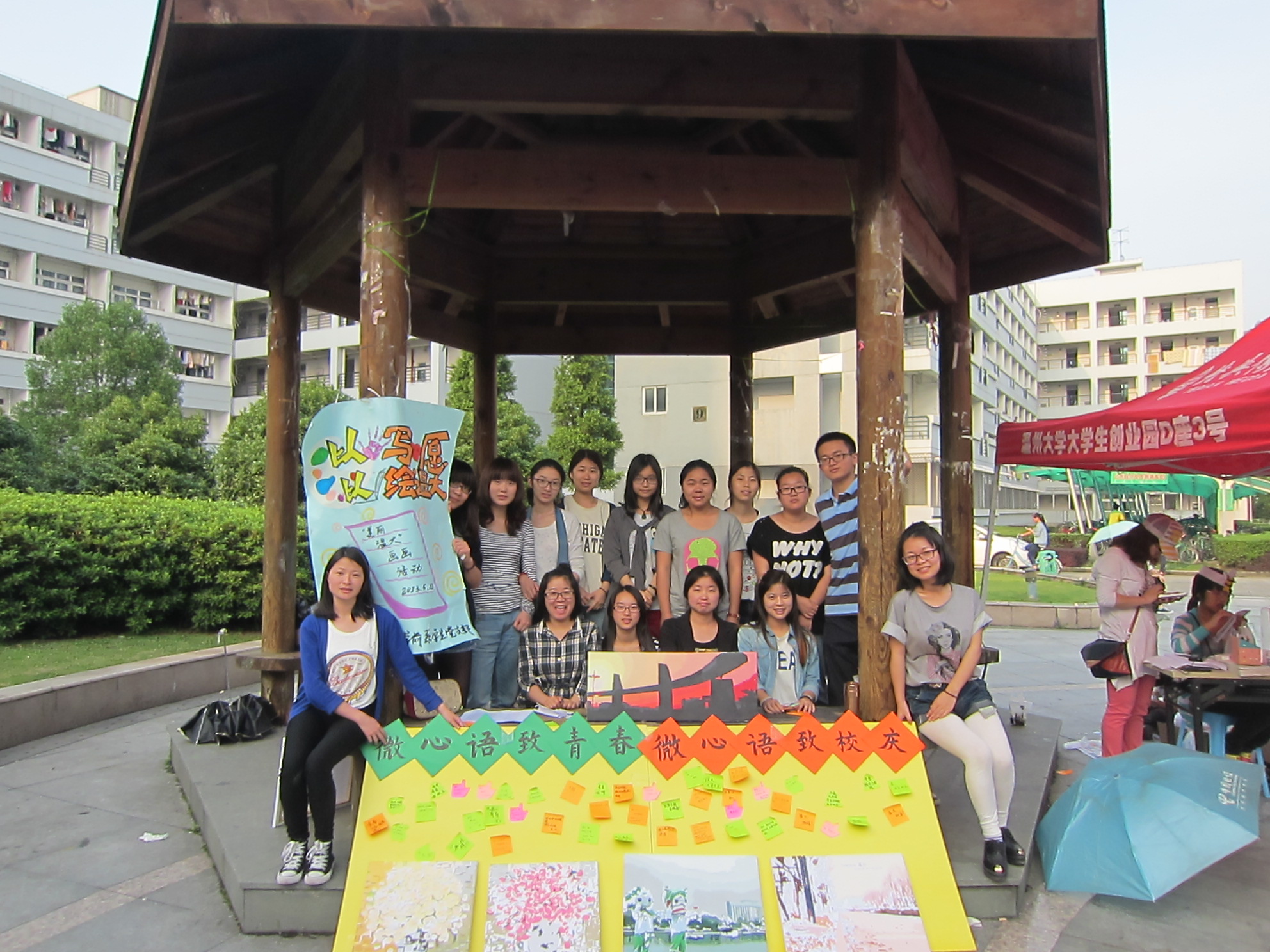 此外,支部还设计了两个微心语板块,分别是“致校庆”和“致青春”。支部提供了便签纸和水笔,热情地邀请过往的行人对“校庆”和“青春”留下自己的祝福和寄语。一边,灵动的墨迹不停地在纸上飞舞,另一边,一张又一张真挚的致词出现在留言板上,微心语的板块由此变得热闹非凡。