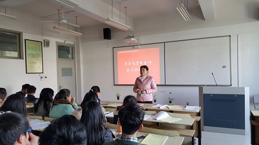 3月2日下午2点,在南校9号楼B304,隆重召开2013级教育技术班级实习动员大会,出席会议的有:学院主管实践教学院长潘玉进教授、教技系书记李丽老师、教学法老师李伟老师、专业老师刘根萍老师、教务科胡孙贵老师、以及教技系29名本科生和4名研究生。会议由李伟老师主持。