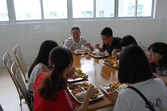 杨立淮书记谈吐幽默风趣,带动整个饭桌上的人都充盈着笑意。他的话语间,既有老师对学生的谆谆善诱,又有长辈对晚辈的殷殷期待。他充分肯定了知心姐姐这支队伍二十年来的历史,以及我们实践队做出的成绩。同时也不乏对实践队的支持和鼓励,并且以在场的黄冰融书记为例,希望我们无论在何岗位,都要努力,都要做好,在其位思其职,拥有一颗上进心,开拓进取,锐意创新。这个中午也因本次谈话而变得更有意义,推动着实践队往前迈进。