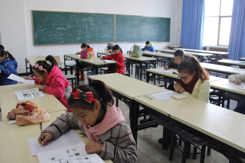 心理测量室里,陈秋珠老师向学生讲解了如何做心理测量,要求孩子们根据填图要求答题,通过得分推算他们的逻辑推理能力。从年龄计算到答题得分,最终通过常模对照表测出IQ得分,最后结合每位孩子的答题具体情况反馈分析结果。得知自己的IQ成绩及老师给的评语,孩子们异常兴奋,对自己今后的学习充满信心。