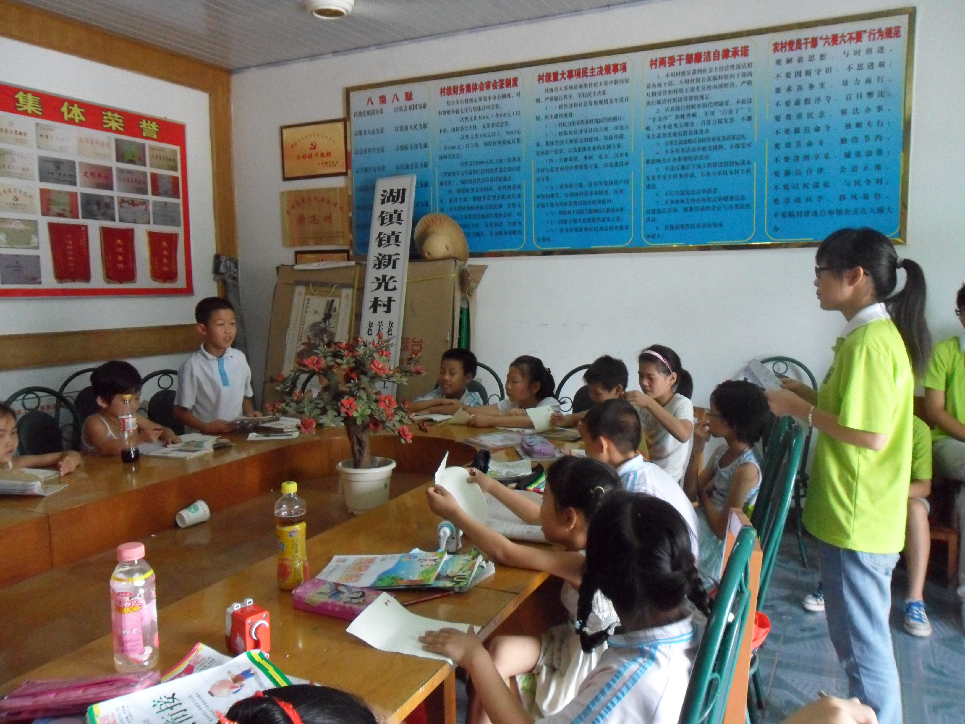 农远暑期社会实践队,本着以“体验农村生活、支援农村教育”为己任。实践队大力支持并对湖镇部分学生开展支教活动,为学生开设了一系列丰富有趣的课程,包括环保课、“红色”课等。7月14日,实践队为学生进行实用而有趣的环保课。