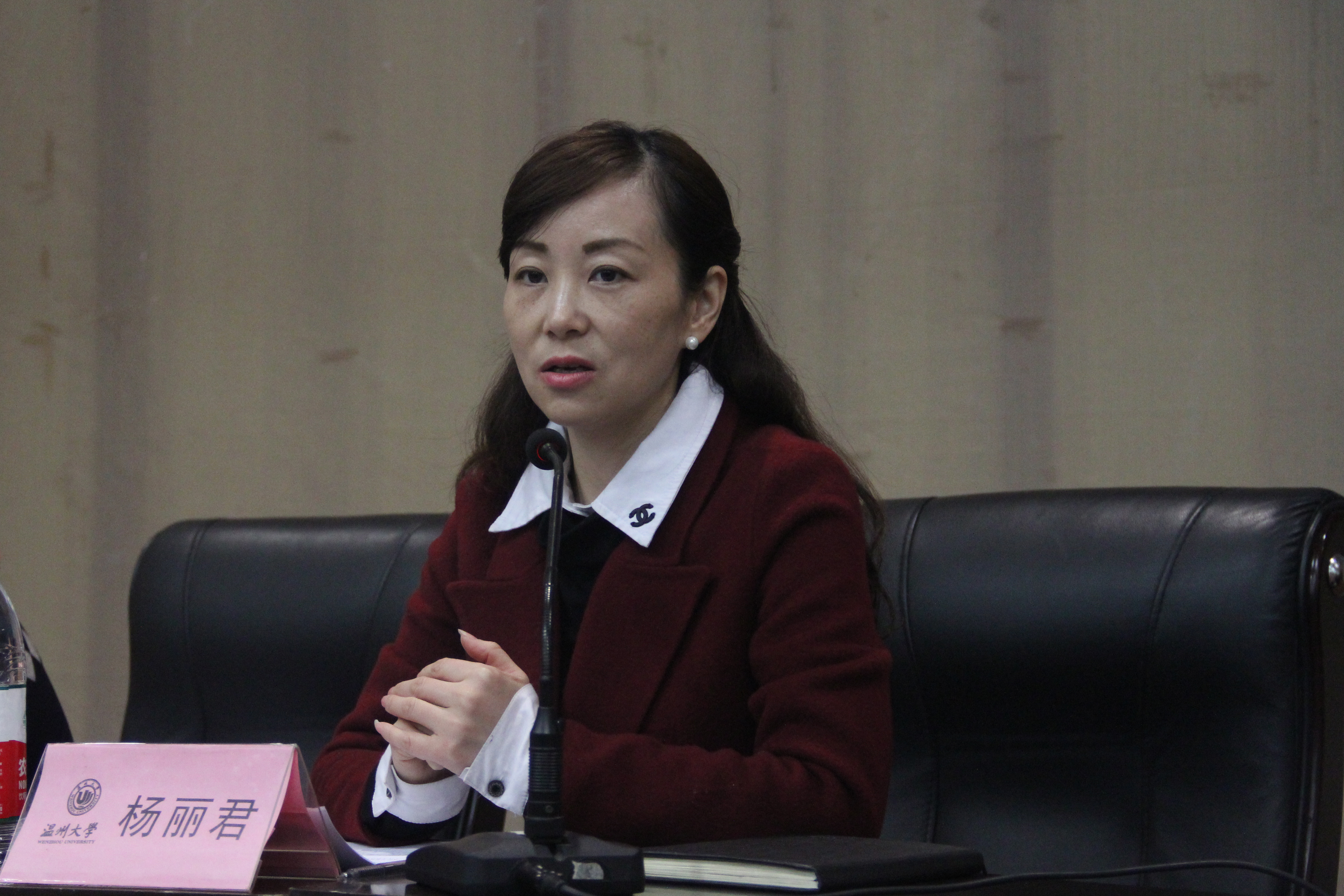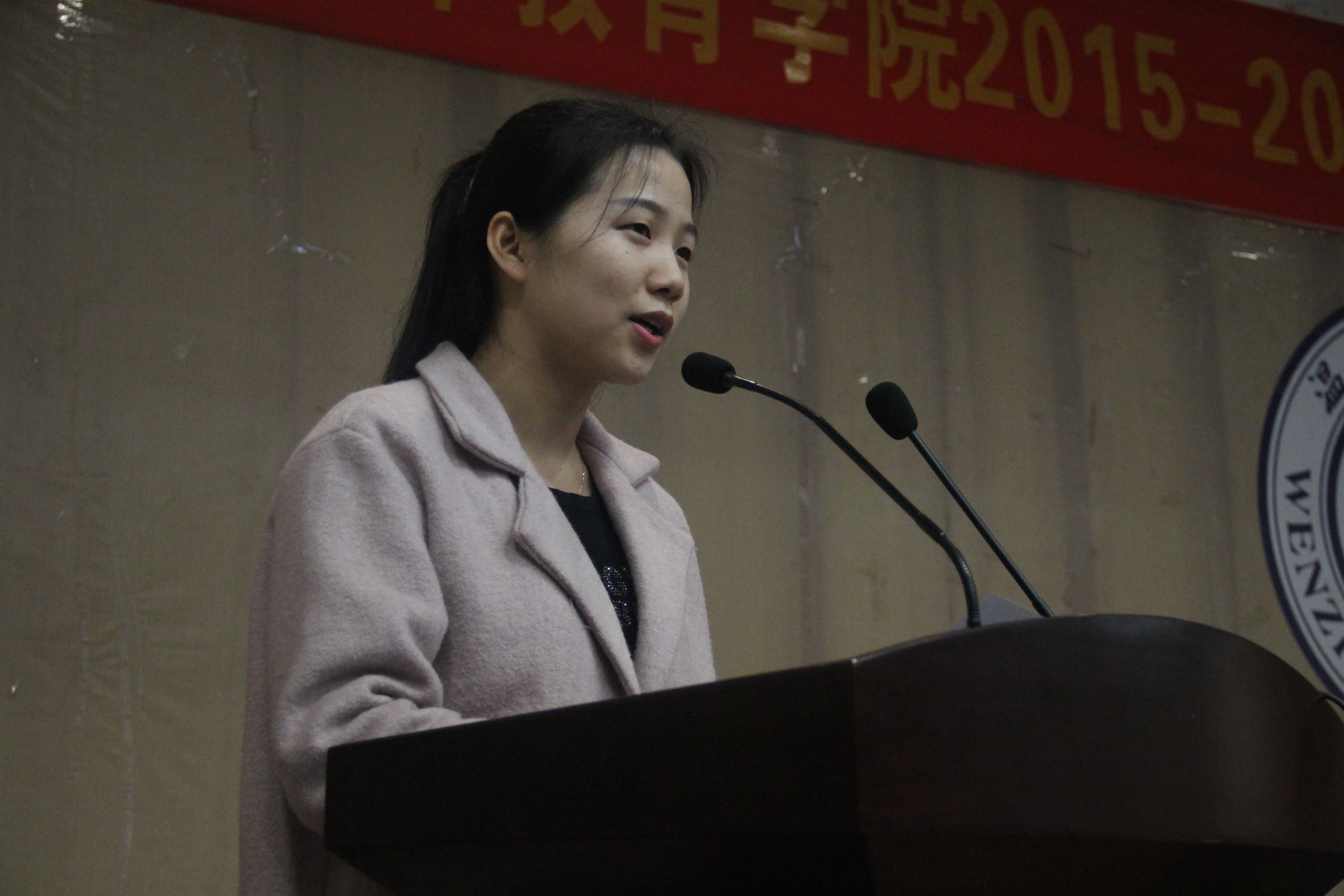 的团学工作开展的有声有色,取得了许多成效。各项活动工作的圆满完成,都凝聚着学生干部共同的智慧、汗水、奉献和付出,包含着同学们对学院的热爱的情怀,也展示了教院学子的风采。杨丽君老师也希望学生干部能够在自身努力进步的同时,能够团结和带动全院更多同学一起进步,营造更加良好的学院学风和校风。最后,杨丽君老师讲到,2016年是学院十三五规划的开局之年,也是学校和学院发展非常关键的一年,希望学生干部们能够以此次培训作为一个新的起点,不断提高自身的综合素质和工作能力,更好地发挥纽带和桥梁作用,立足当前,放眼未来,时刻以一名学生干部的规定严格要求自己,磨练意志,增长才干,不断地积累、探索、实践,使学院各项工作再上一个新的台阶。