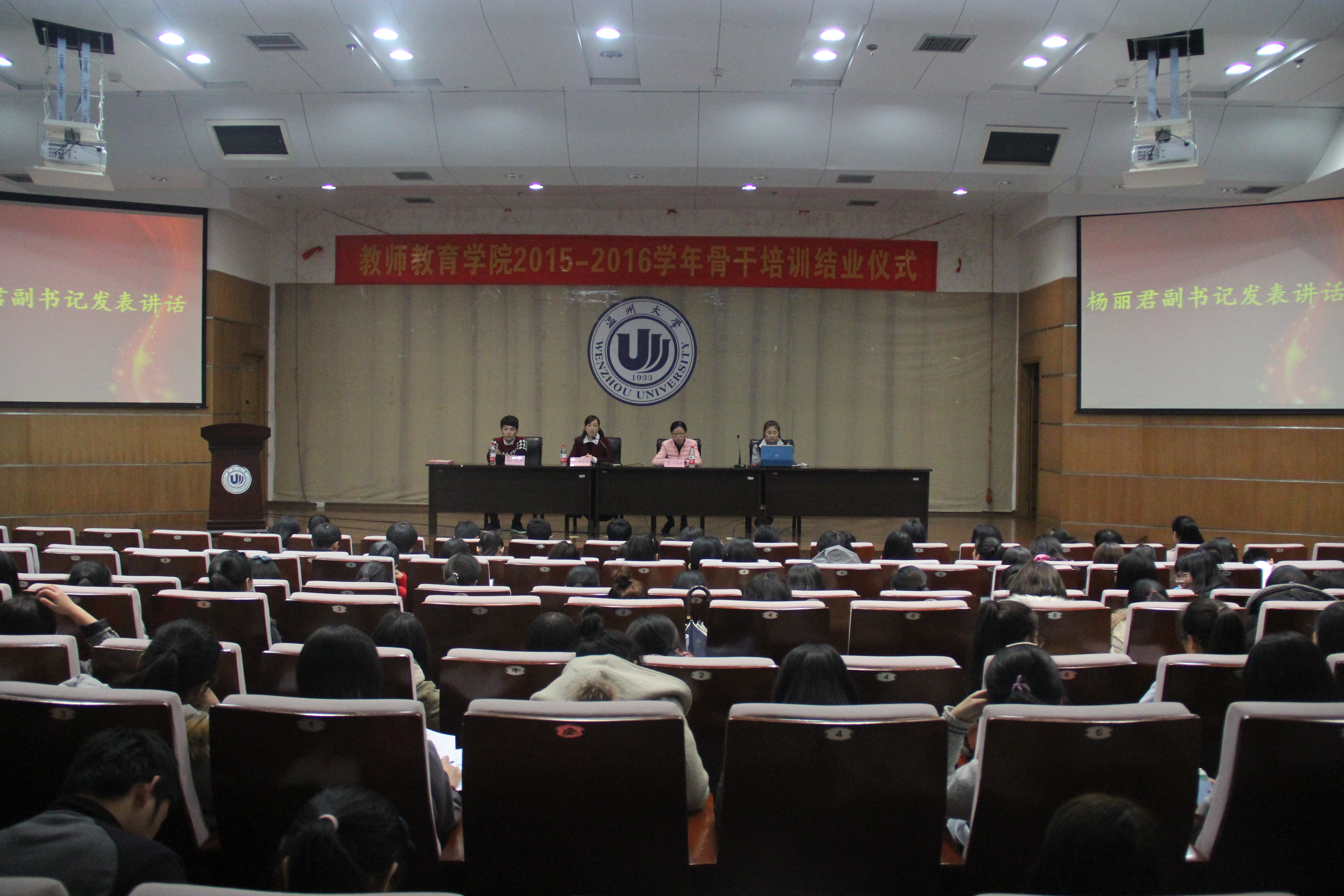 2015——2016学年骨干培训结业仪式在北校信息楼报告厅顺利举行。院党总支副书记杨丽君老师、学生科严晓秋老师、邵胜男老师以及全体学生骨干到场参与本次结业典礼。