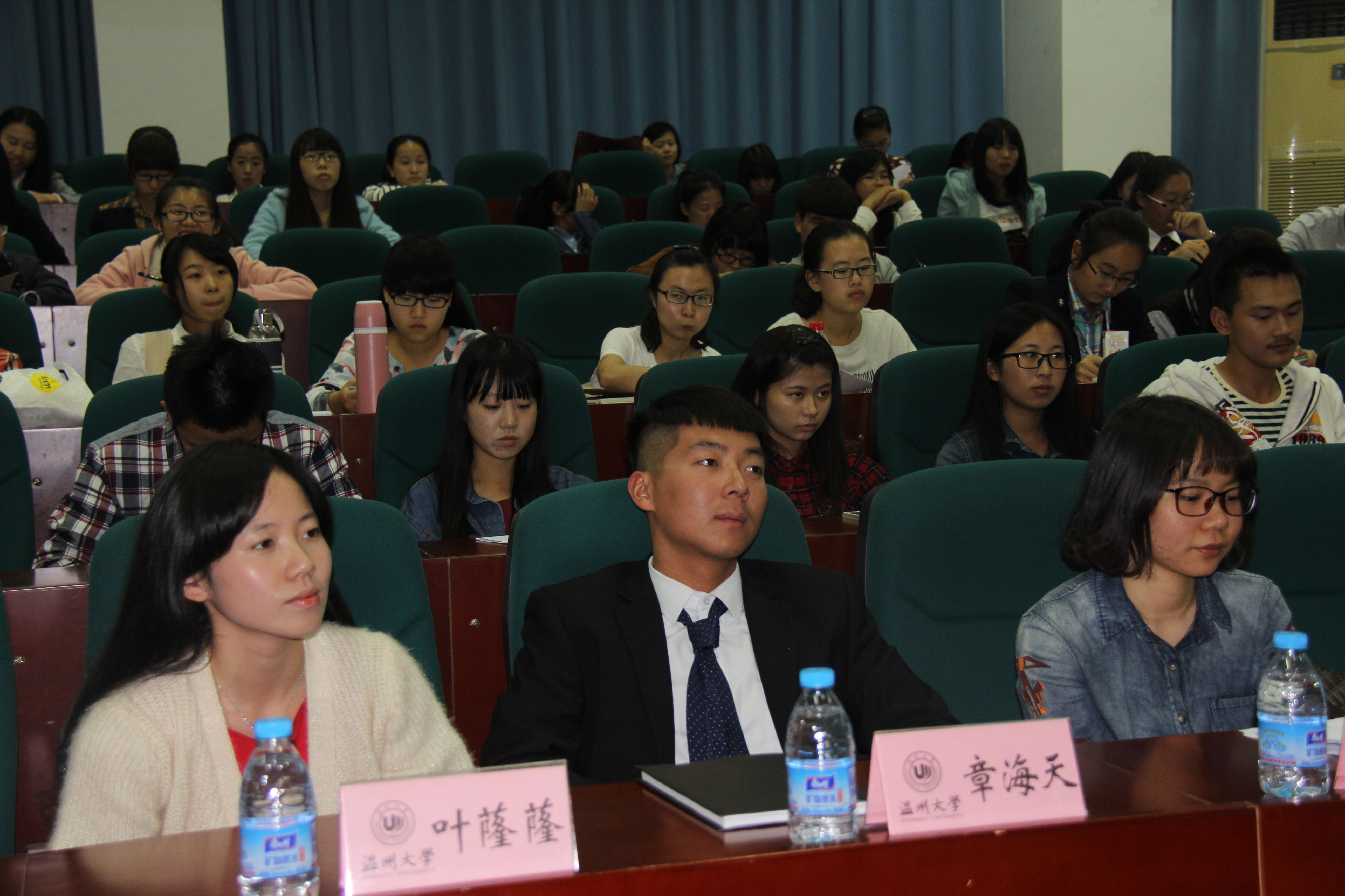 团干培训艺系列讲座之“做好一名学生干部,也是一门艺术”。在主持人致开场词后,三位优秀的学长学姐为各位团干们带来了一场生动诙谐而令人深思的讲座。首先,叶蕯蕯学姐为大家播放了教院团委招新时的视频,并询问大家,成为一名团干两个月之久,你是否记住了团委下的四个中心,是否记住了团委大家庭中的各位成员。这一轻巧的问题却引起了同学们深深的反思,也懂得了“把握细化,用心做事,乐在其中”的内涵。紧接着,章海天学长用生动的小故事以及流畅的英语,在幽默的氛围中告诉我们“能力,是由信心、耐心、责任心和细心构成的”。最后,徐佳学姐则娓娓道来,告诉我们“要学会取舍,学会承担,学会合作,学会反思”。