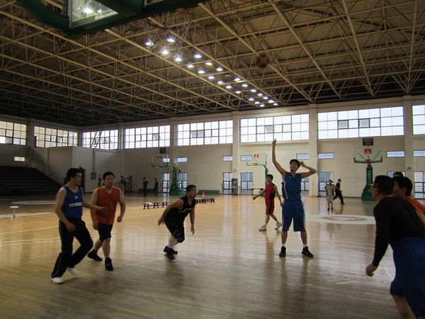 与人文学院在北校区体育馆举行教工篮球友谊赛,双方对此次比赛高度重视,蔡联群书记亲临现场指导,人文学院周剑平书记更是亲自披挂上阵。双方尽遣主力上场,拼出水平,比出风格。