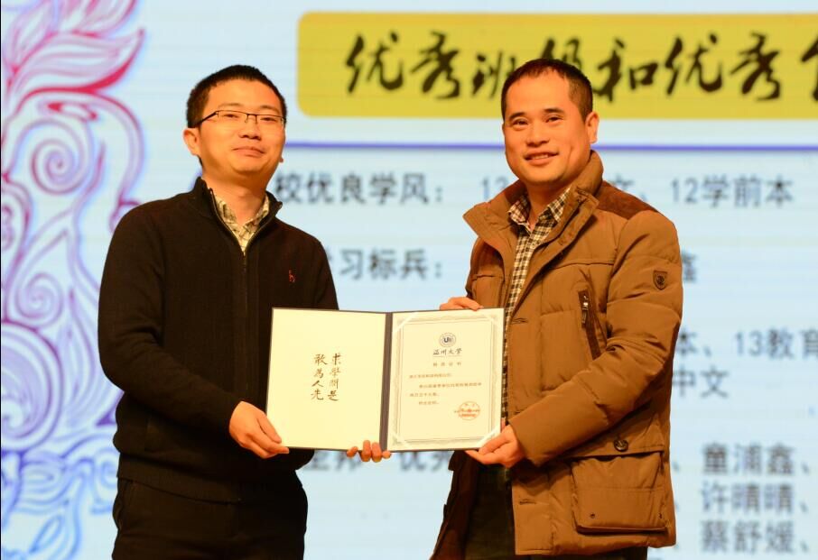 在学科与专业建设、教学工作、学生工作、文化建设等方面取得的可喜成绩,对获奖者和指导老师表示热烈祝贺,也对这些努力进取、爱岗敬业、对学院学校贡献突出的先进集体和个人,表示诚挚的谢意。“世界不曾亏欠每一个努力的人!”,最后郑院长预祝2016年全院师生能坚持奋发图强,再创新的辉煌!为了鼓励优秀老师和优秀学子,随后进行了学风表彰,教师91吃瓜