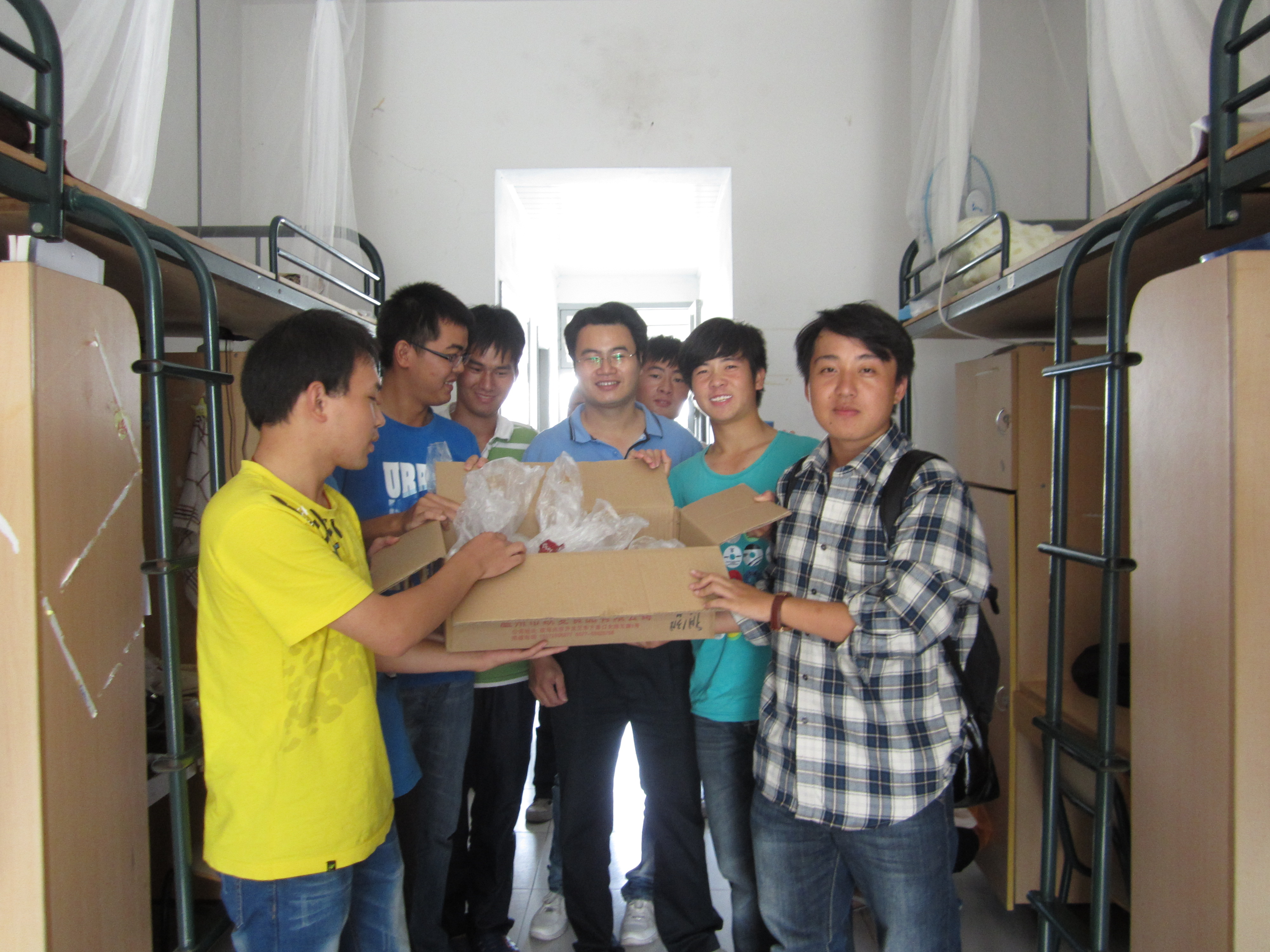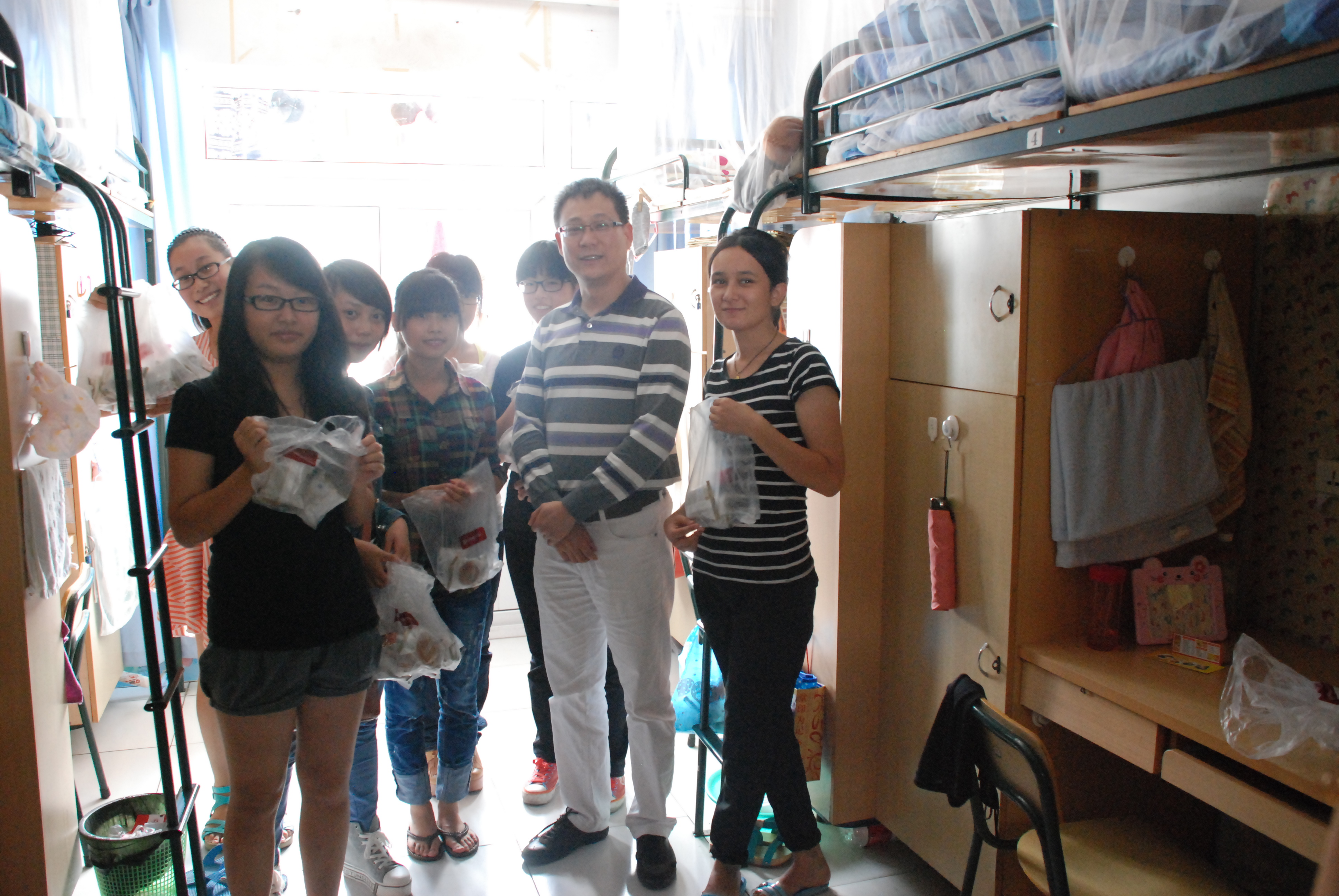 是一个庞大集体,在溯初学区的居住比例也占到了大多数,因此学院领导和班主任们以宿舍楼为单位,分成几个小组,给同学们送去节日的慰问。