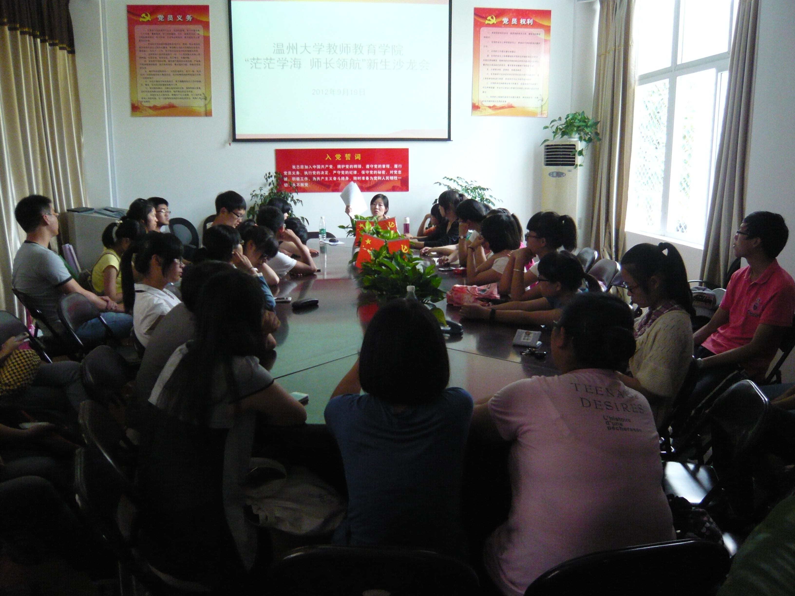 于9月19日下午分班级召开了六场新生沙龙会。沙龙邀请了学院老师和高年级的同学参加,与新生进行面对面的交流。