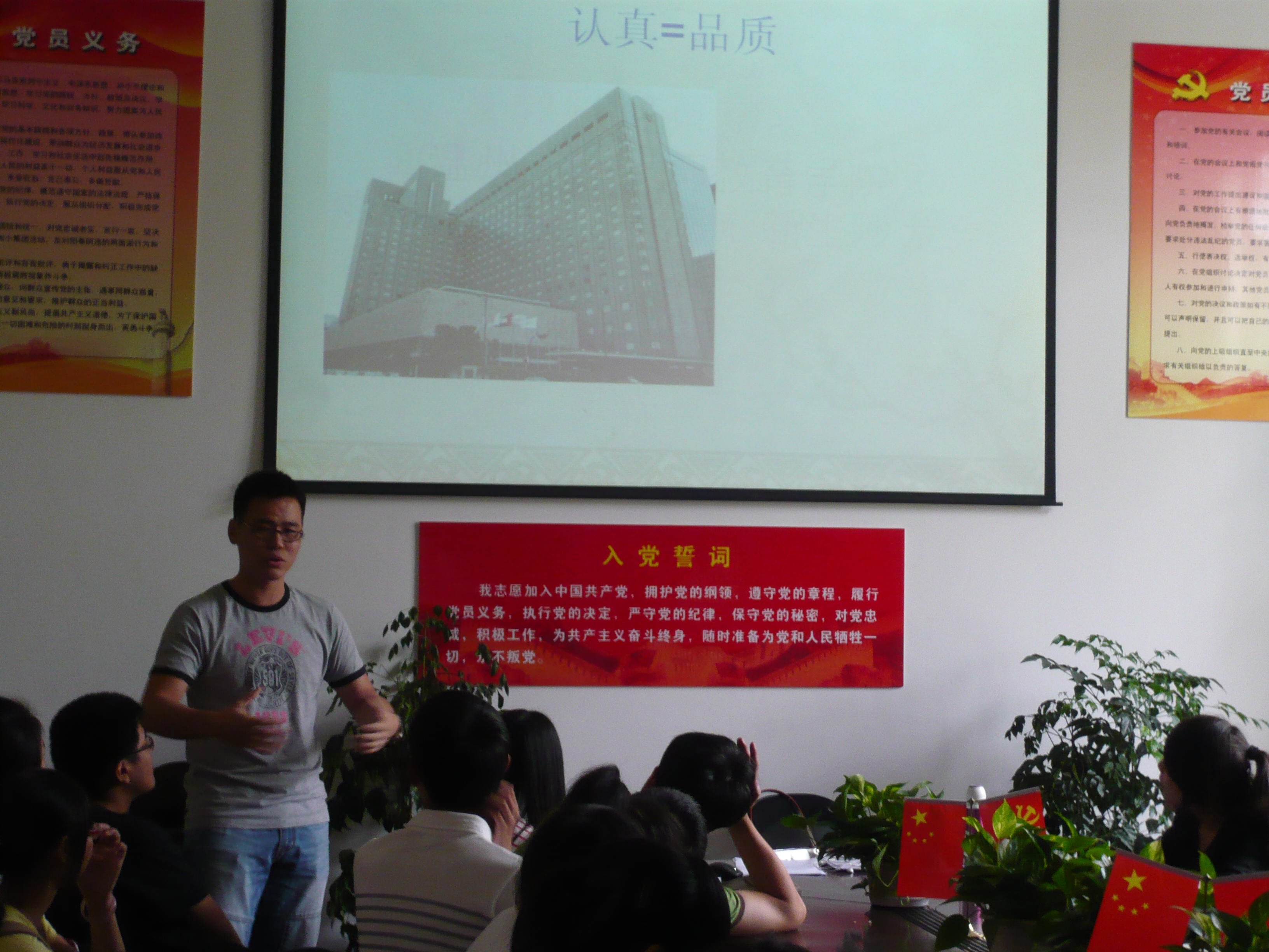 09教技的赵小雨向12教技新生同学着重介绍了如何建设班集体,增强班级凝聚力。她从班级简介、工作概况、优秀活动展示以及活动概况等四个方面为新生讲述了团学工作和班级管理方面的知识和经验。09教技的姜雨潇同学则从专业学习、考级考证、学科竞赛以及科研等四个方面向新生描述了大学学习的主线,使新生从整体上掌握了学习、科研、竞赛的基本方向。未来教师,如何才能站稳讲台呢?她认为,同学们必须具备过硬的专业知识和勇于创新的科研能力,这样才能深受学生爱戴,掌控讲台。