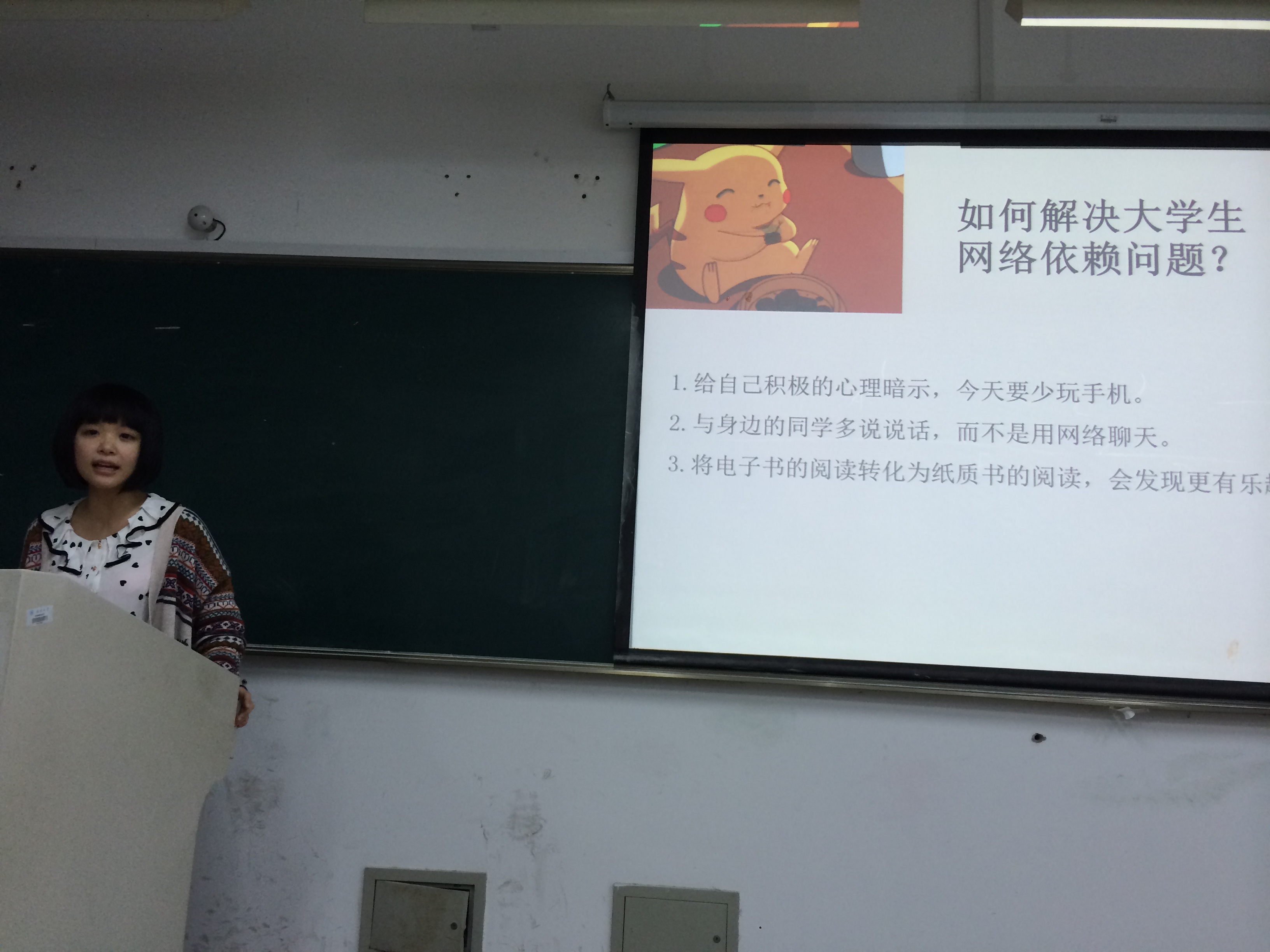 随着各种任务的叠加,以及生活节奏的不断加快,现在大学生的心理压力普遍较大。在这次班会上,大家还通过心理测验,了解了自己的心理健康状态。主持人为大家展示了大学生较普遍存在的心理问题,比如过分的网络依赖、就业压力下的负面情绪等,她对问题进行了剖析,并以简单而有内涵的小游戏让同学们在参与中学习如何去解决。