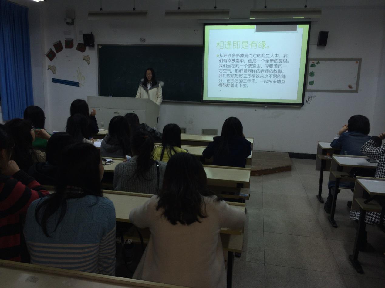 2015年4月12日星期日晚上,我们在303教室开展了新班级建立以来第一次团日活动。本次团日活动的主题是“认识你自己”。转专业的同学要补课,很遗憾与这次活动擦肩而过。但是,她们做了自我介绍PPT,用别具一格的方式,让我们更深入地了解了这几位“亲爱的小伙伴”。