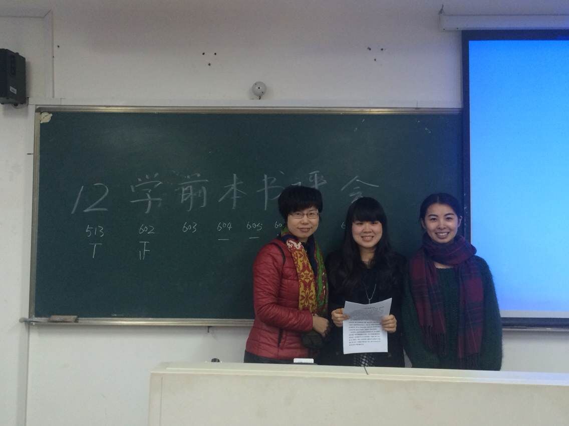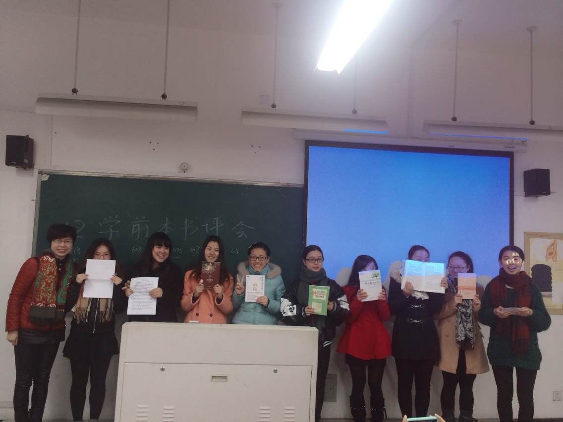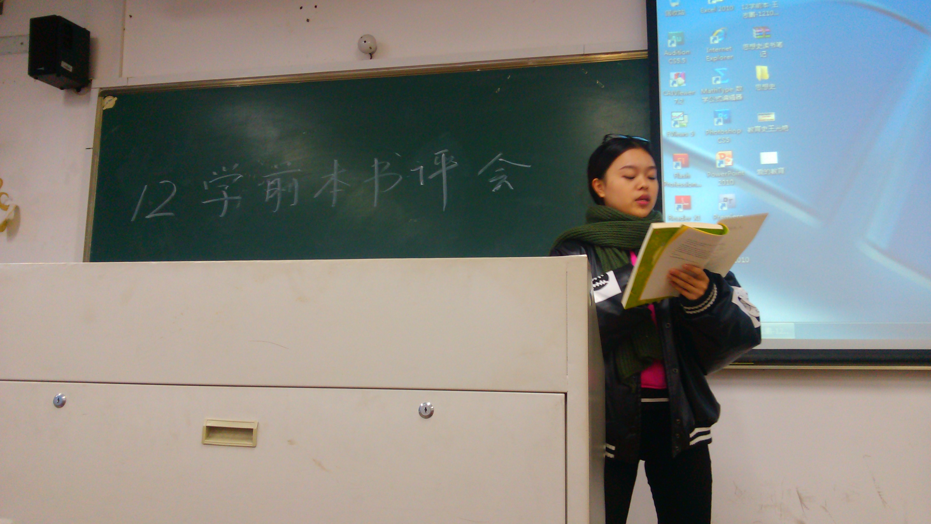 为激发同学的读书热情,营造浓厚的学习氛围,并为同学们提供一个读书交流的平台,12学前本于12月19日上午在北校403举行了一场别开生面的书评会,12学前本全体同学和邵晓芙老师参加了本次活动。