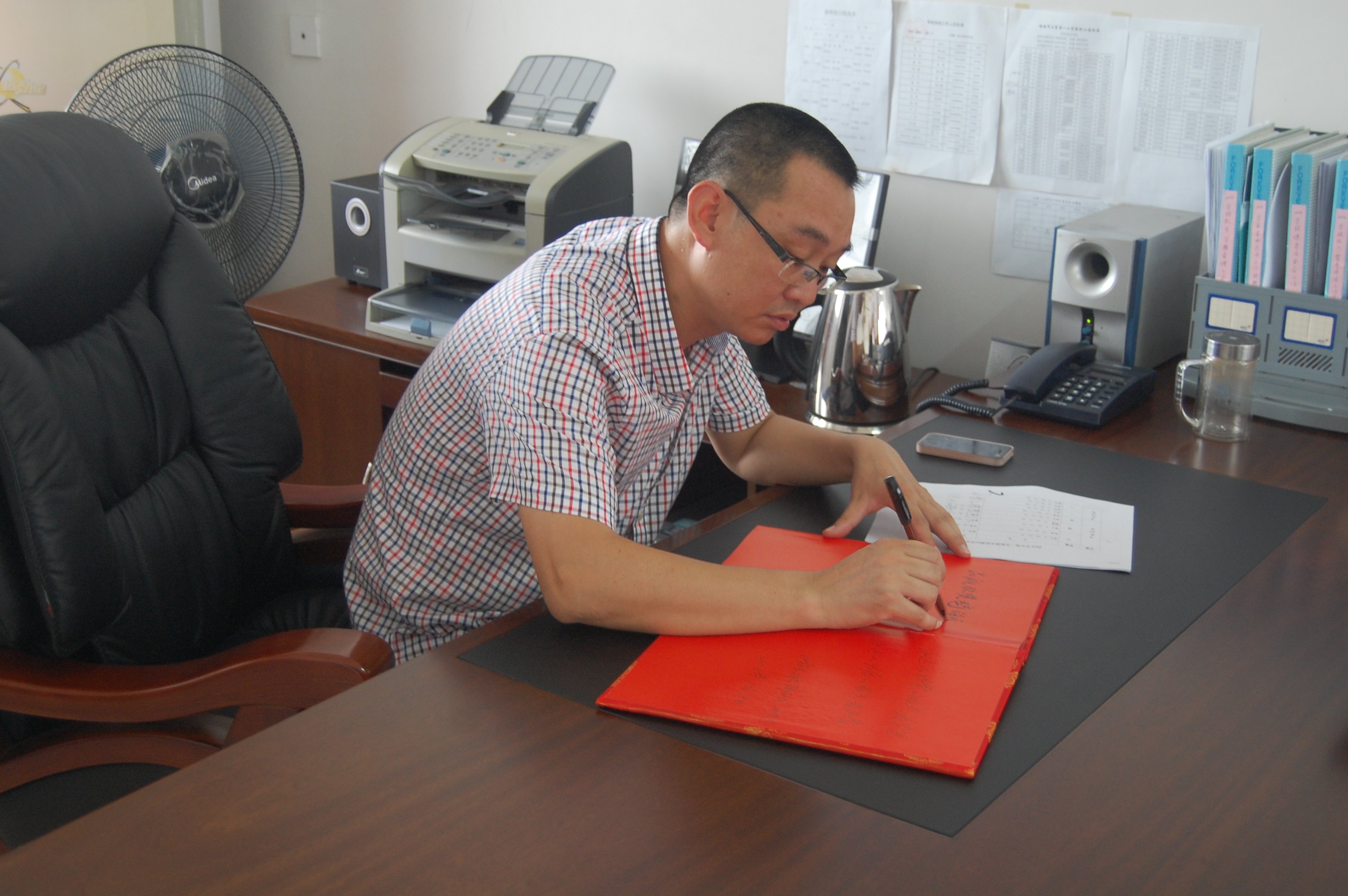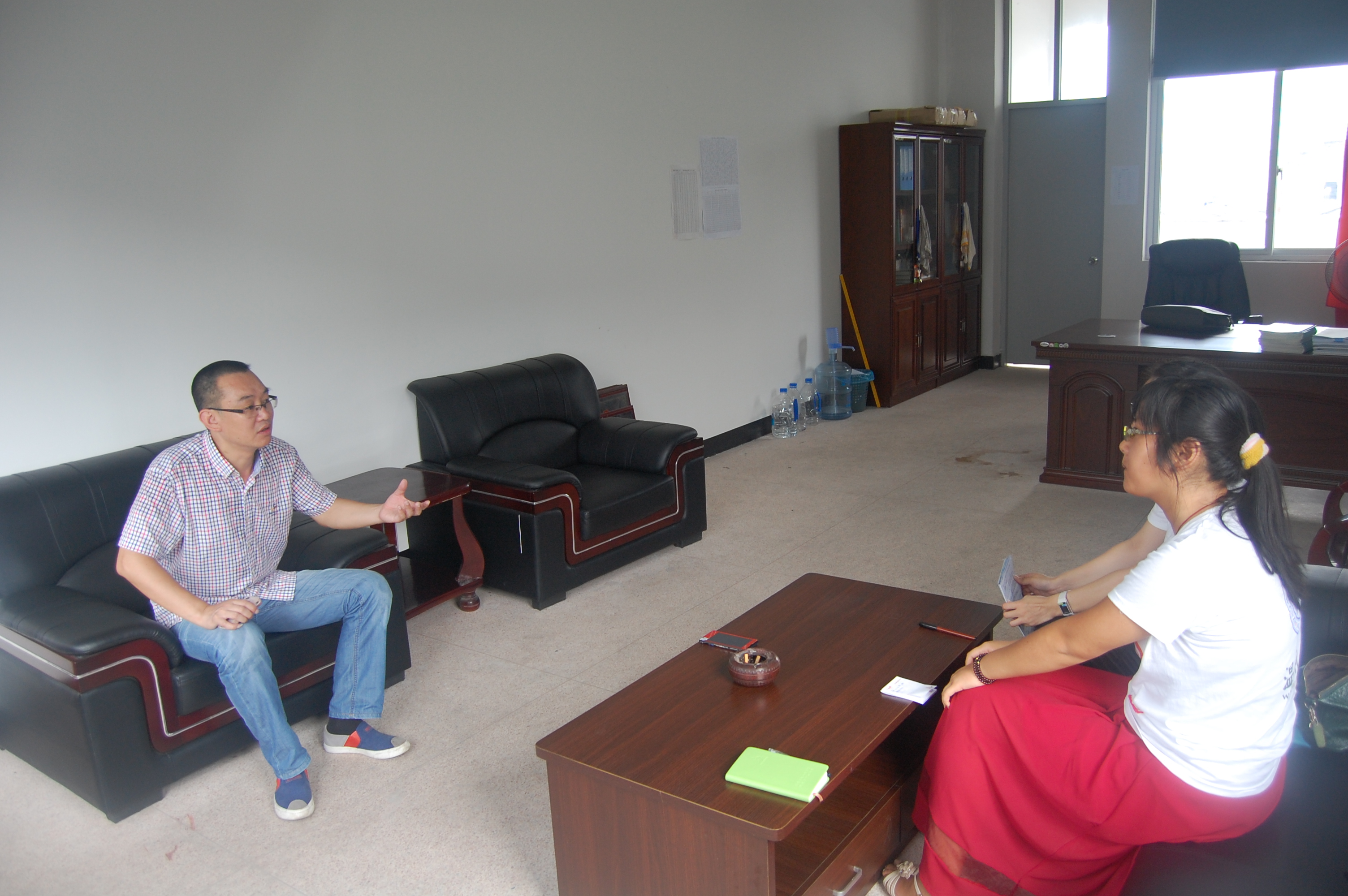 2014年7月19日上午,“访美丽校友,筑青春梦想”实践队的成员们来到瑞安市上望第一小学,采访温大优秀校友黄其通校长。
