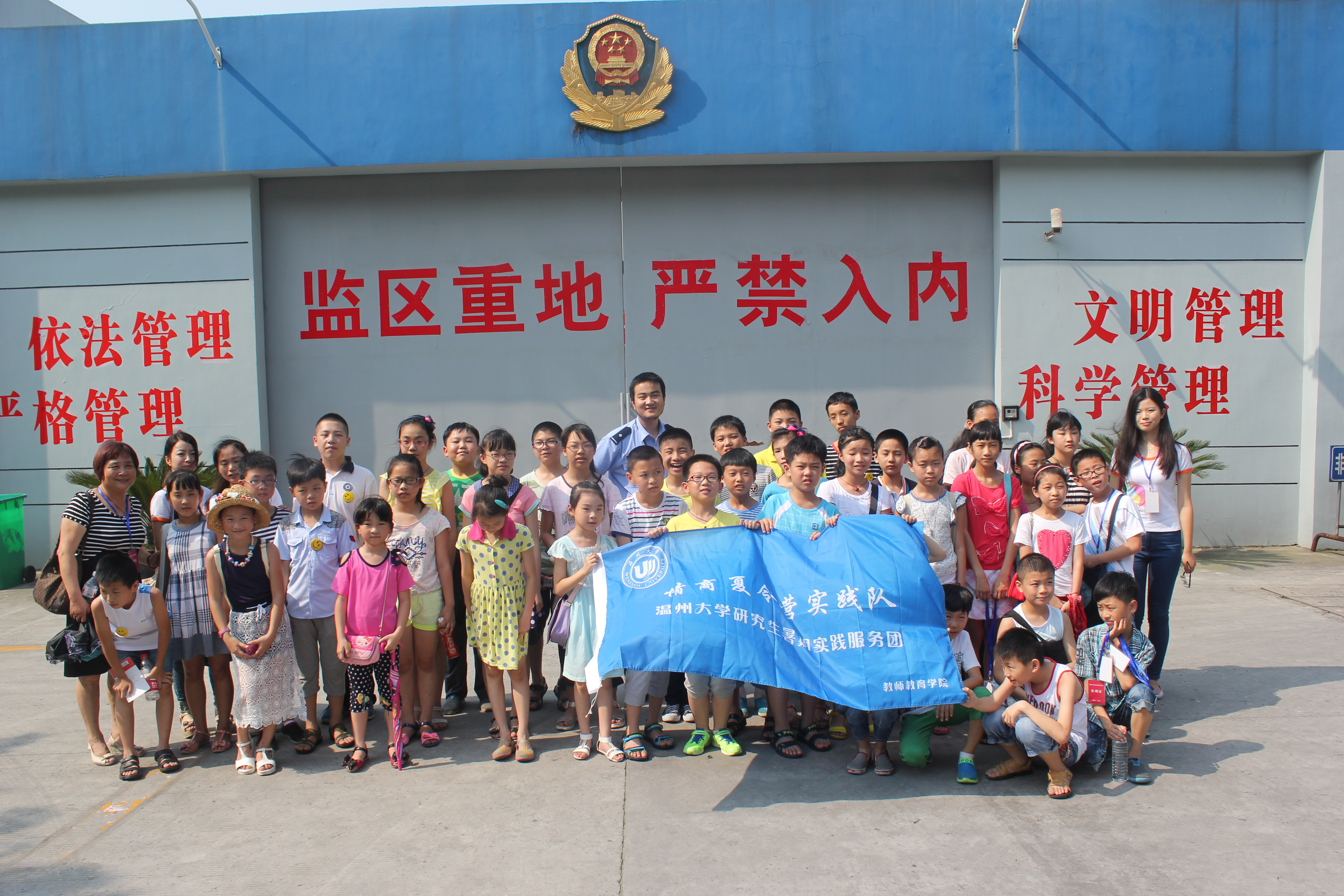 感受完国学的春风后,营员们迎来了第五天的活动。活动由团市委联系指导,协同温州市看守所共同开展,以“警示教育”为主题的,看守所参观活动。参观活动结束后,坐在驶离看守所的大巴上,营员们个个心情沉闷。也许,这次的警示教育对他们来说,有一些沉重,但,祖国的未来,今后的栋梁应该有这样的守法意识,应该学会承受一份担当。相信这次的看守所之行会为营员们带来不少的启发。
