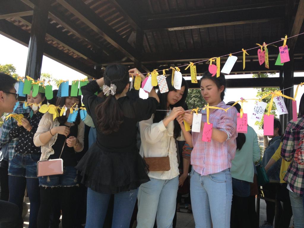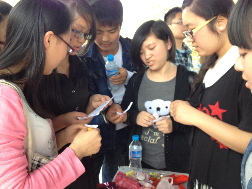 本次活动共分三块内容:制作校庆书签、短信送祝福评选、校庆知识竞赛。当天,溯初亭的柱子上,被一根根彩带串联,同学们把融入自己祝福的书签挂在彩带上,随风飘扬。期间,同学们还对征集的祝福短信进行评选,并开展校庆知识竞赛,在认识、了解学校历史、概况等基础上更好地迎接校庆,为校庆出一份力。