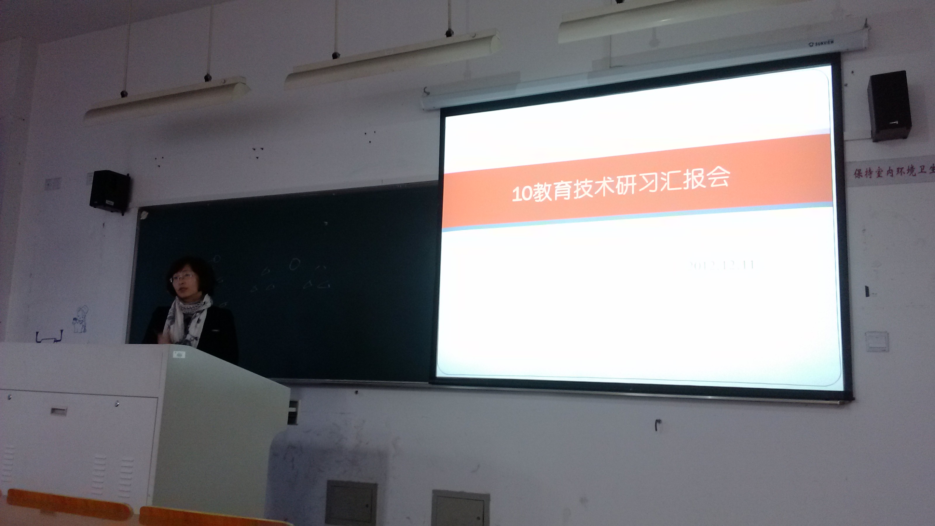 2012年12月11日星期二下午13:30-16:30,针对本学期第十三周进行的研习活动,10教技本开展了研习汇报会,由班长许晶晶主持,池福淑老师指导。