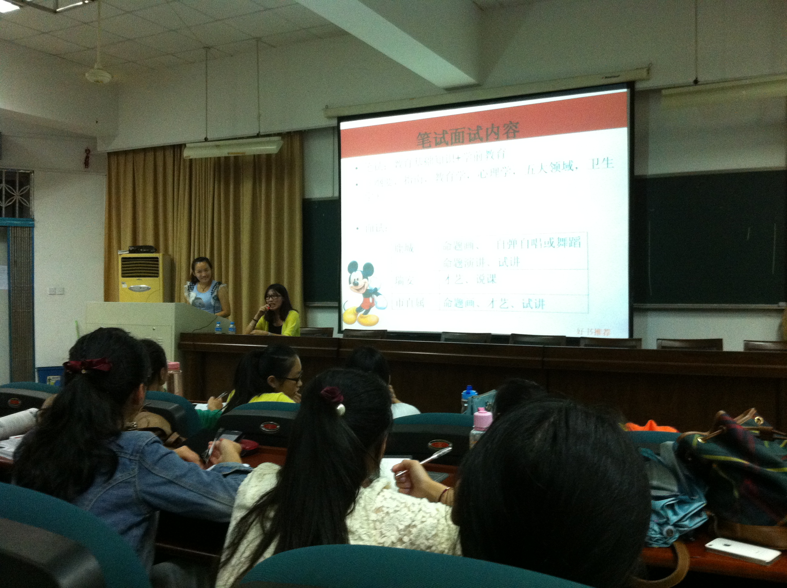 10月8日晚上6点半,12学前专1班在3-101教室举行了本学期第二次班会课,并荣幸地邀请到了2013届的郑洁学姐为我们答疑落下帷幕不久的2013年温州三区市的考编内容及分享她自身的考编感悟。