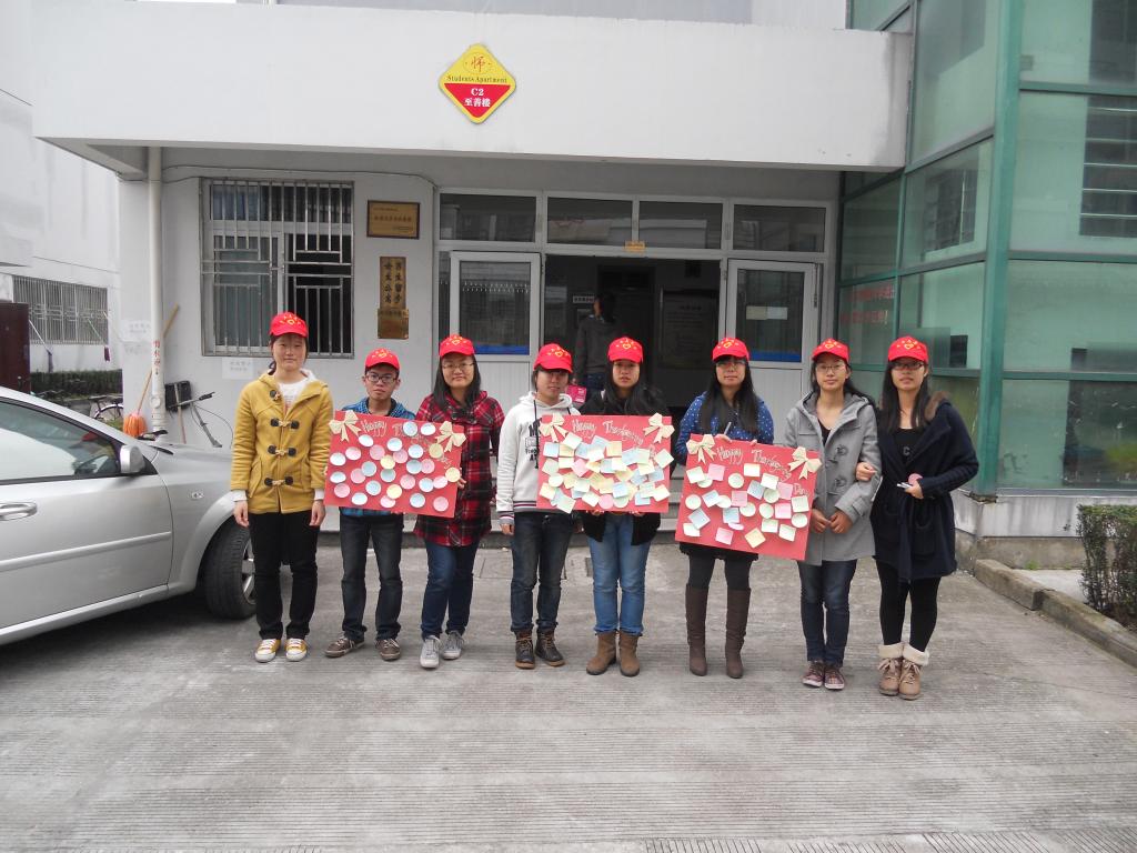 活动在星期六下午两点正式开始。志愿者们在C2留下集合,以三人为一组,每组领取制作好的KT板、便利贴和笔,大家就这样信心满满的出发了。我们的收集范围是很广的,每幢有我们学院学生居住的寝室我们都去了。因为是星期六,很多人都安排了自己的活动,部分学生不在寝室或是在休息,这都增加了我们的收集难度。志愿者们怀着一颗感恩的心,礼貌地敲开每一扇门,而大部分同学们还是很配合的,纷纷留下了自己对辅导员老师的感谢与祝福。经过志愿者们的努力和同学们的支持,我们很快就收集到了很多的祝福语,有对老师表达感谢的——谢谢老师们对我们生活上的关心;有对老师的关心的——天气转凉了,老师们要注意保暖哦;也有对老师的祝福的——祝愿老师天天开心,越来越漂亮······