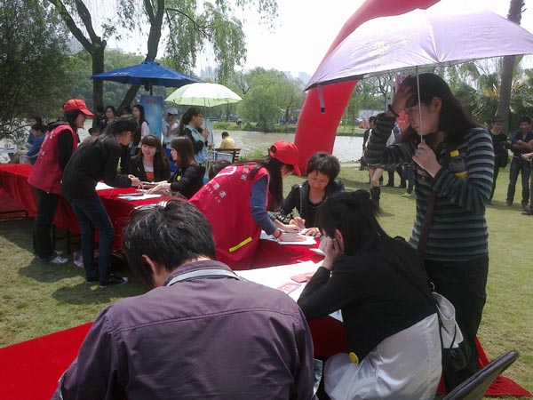 4月22日,11教技本的29位同学经过培训,前往温州江心屿担任“温州万人相亲”活动志愿者。29名志愿者身穿统一的志愿者服装,分成若干小组负责舞台区、游戏区、爸妈相亲区等区域的服务工作。活动中,来参加相亲的单身人士、后援团、父母络绎不绝。这也使得志愿者们忙的不可开交。但越是这样的情况,我们就越要坚守岗位,做好自己的工作。一天的忙碌让我们疲惫不堪,但是相亲会的圆满结束是我们乐意看到的结果。能为社会的公益事业做出一点贡献,是我们的心愿。同时也希望社会公益事业能够越办越好。(通讯员:唐琼梅)