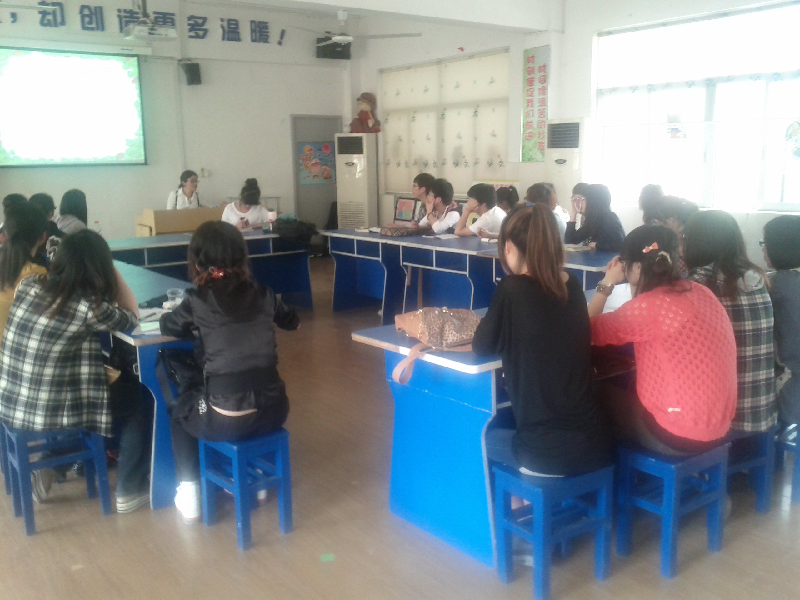 最后,瓯海实验小学心理教研组长陈静老师给大家开展了《播撒阳光 激扬生命》的学校心理健康教育专题讲座。“注重师资,加强队伍建设;开发课程,注重常态教育;系列辅导,注重多管齐下;开展丰富活动,构建和谐校园。”从这些方面我们可以看出瓯海实小非常注重小学生的心理健康教育。陈老师还给我们布置了七项任务,以期帮助我们更快更好地学会如何将理论与实践相结合,快速掌握教学方法。