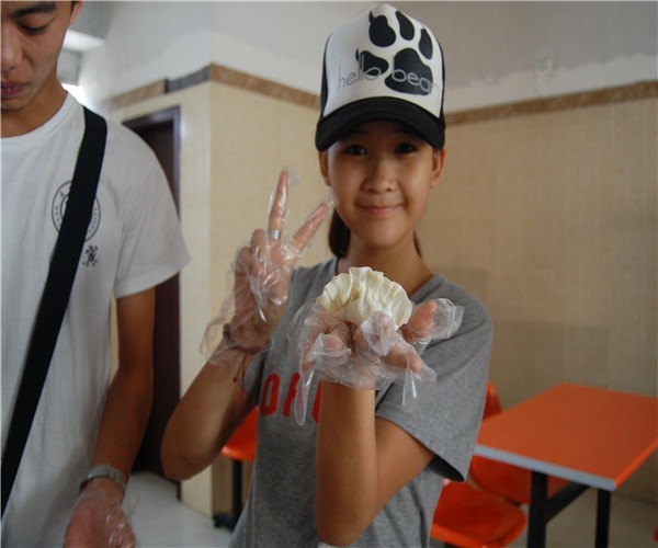 考虑到孩子们的玩闹心性,队员们被分成两批。全体女生和个别会包饺子的男生留在一楼食堂担当大厨。其他的队员则陪孩子们在二楼小餐厅包“特色饺子”。孩子们创意十足,捏出许多“灯笼饺”、“南瓜饺”、“水杯饺”……他们很久没有接触家庭韵味浓厚的饺子,在这个难得的机会下,都放开了玩耍。