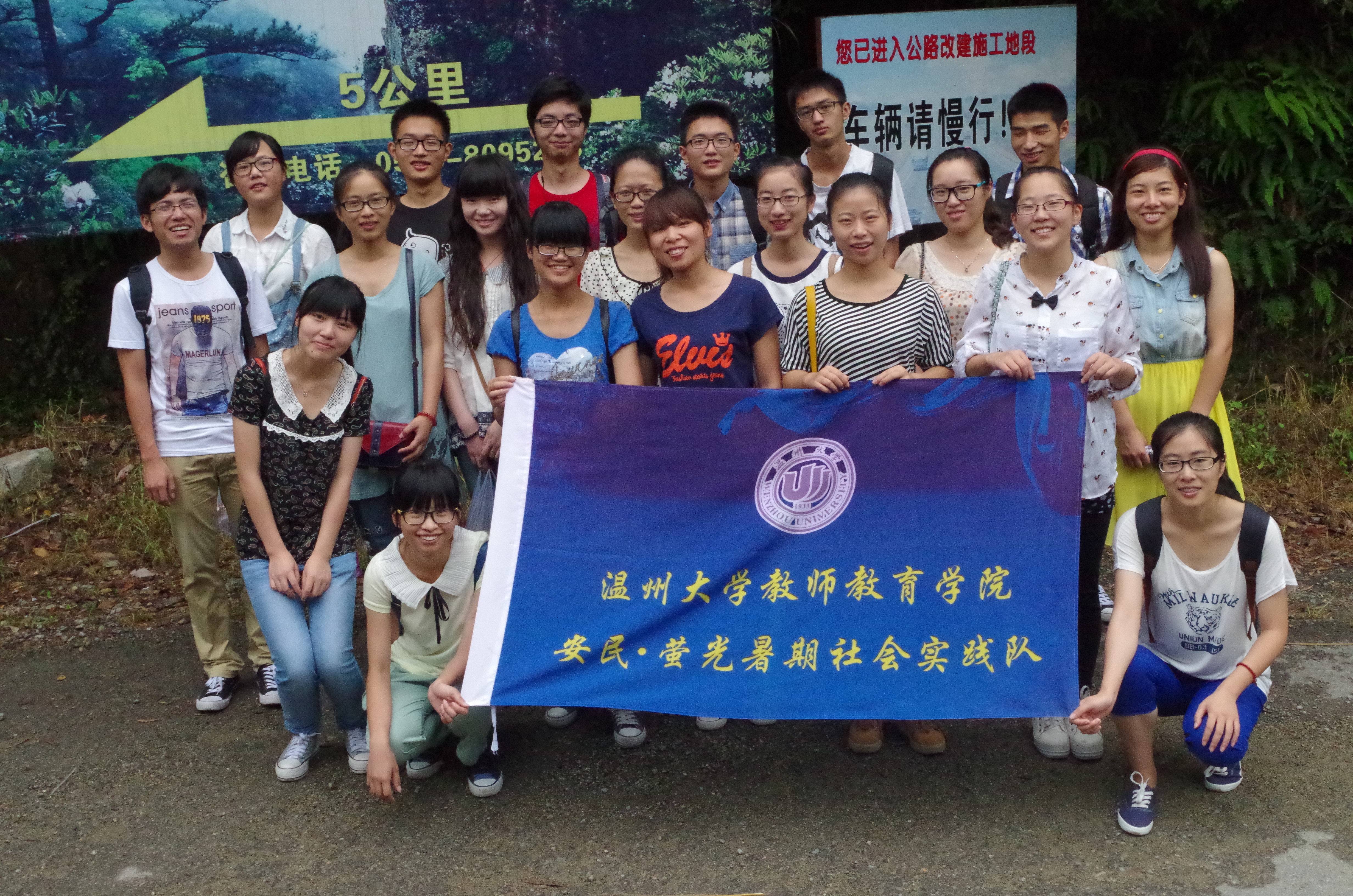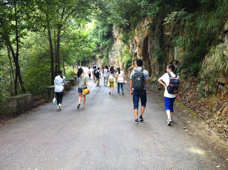 今天,似乎是实践队这么多天来做的最有挑战性的一天了,徒步、调研、探险,行程排的满满的。路上,一行人有说有笑,有队友放着动感的音乐,大家和着音律前进着,一起唱着动人心弦的歌曲,有一种一起旅行的氛围。去的途中大家都没有休息,卯足了劲一直走到了目的地。做完调研后,队员们直奔箬寮原始森林,但考虑到安全、时间等多方面的因素,最终没有去探险。只在门口拍了一张合照,留下大家的足迹。队员们潇洒的在门口席地而坐,进行了短暂的休息。由于上山的路耗费了许多精力加之错过了中饭时间,大家的回程脚步有些沉重,回宿舍的路也显得更为遥远和坎坷。不过大家都没有放弃,相互鼓励着回到了宿舍。